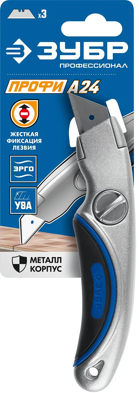Профессиональный универсальный нож для реза различных материалов (линолеум, ковровые покрытия, гипсолитовые плиты, гипсокартон, кровельные материалы, пластик, дерево), с применением значительных усилий.
