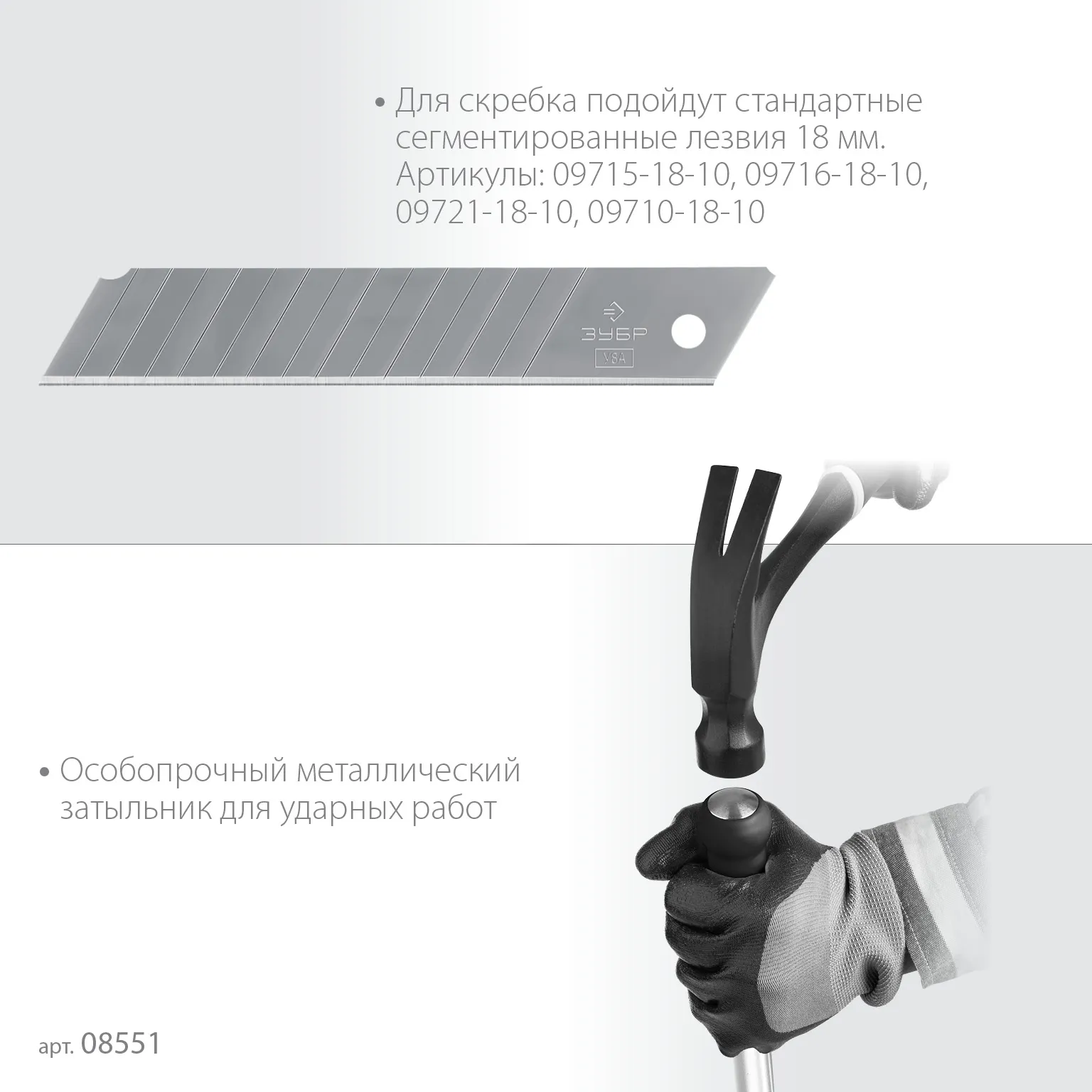 Профессиональный ударный скребок с особопрочным затыльником и металлической рукояткой для зачистки поверхностей от загрязнений