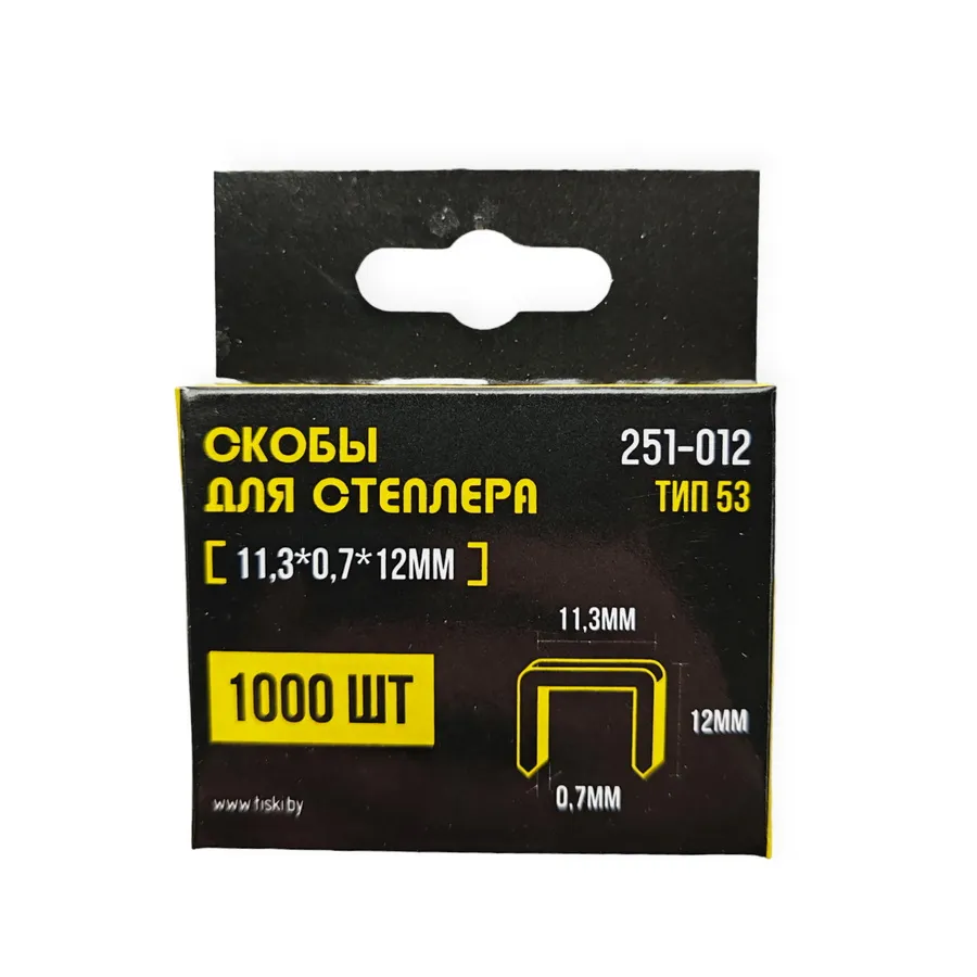 Скобы для степлера 53, 11,3 *0,7 мм, 12 мм, 1000 шт - 251-012