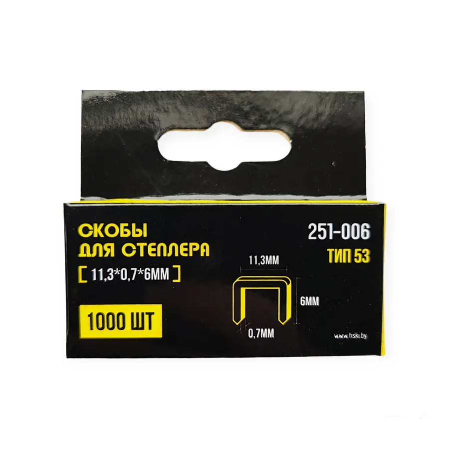 Скобы для степлера 53, 11,3 *0,7 мм, 6 мм, 1000 шт - 251-006
