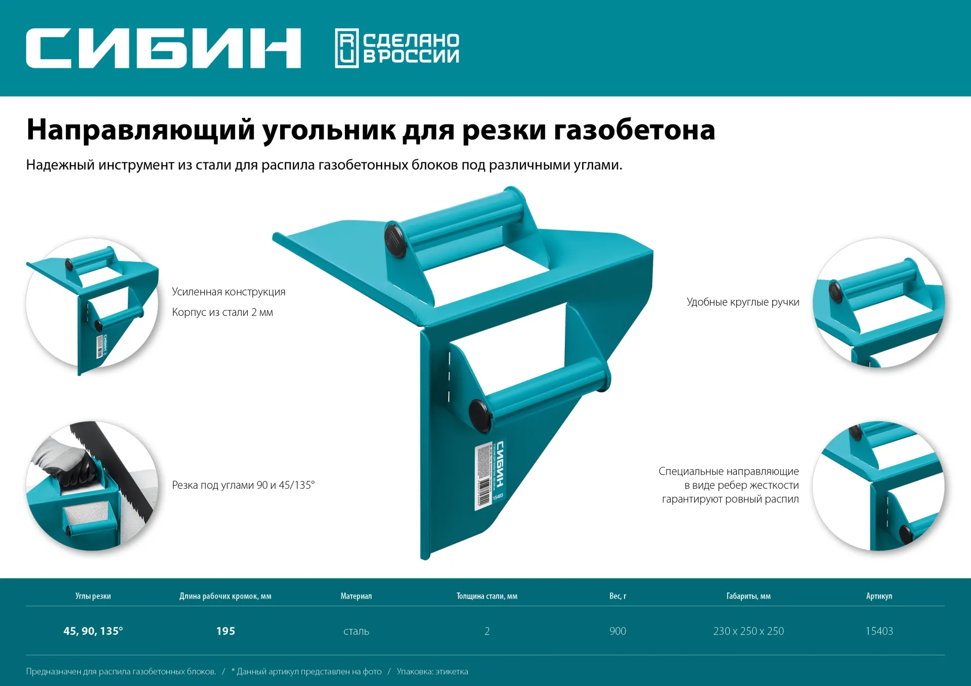Направляющий усиленный УГОЛЬНИК из металла для резки газобетона. Две удобные рукоятки для фиксации на блоке, ребра жёскости, сталь 2мм. Резка под углами 90˚ и 45/135˚