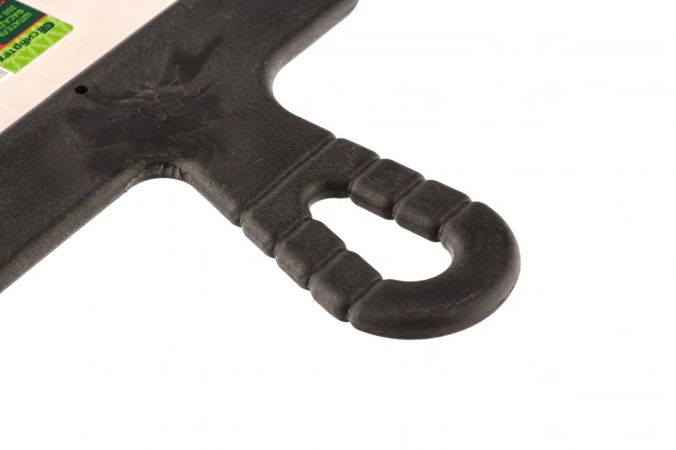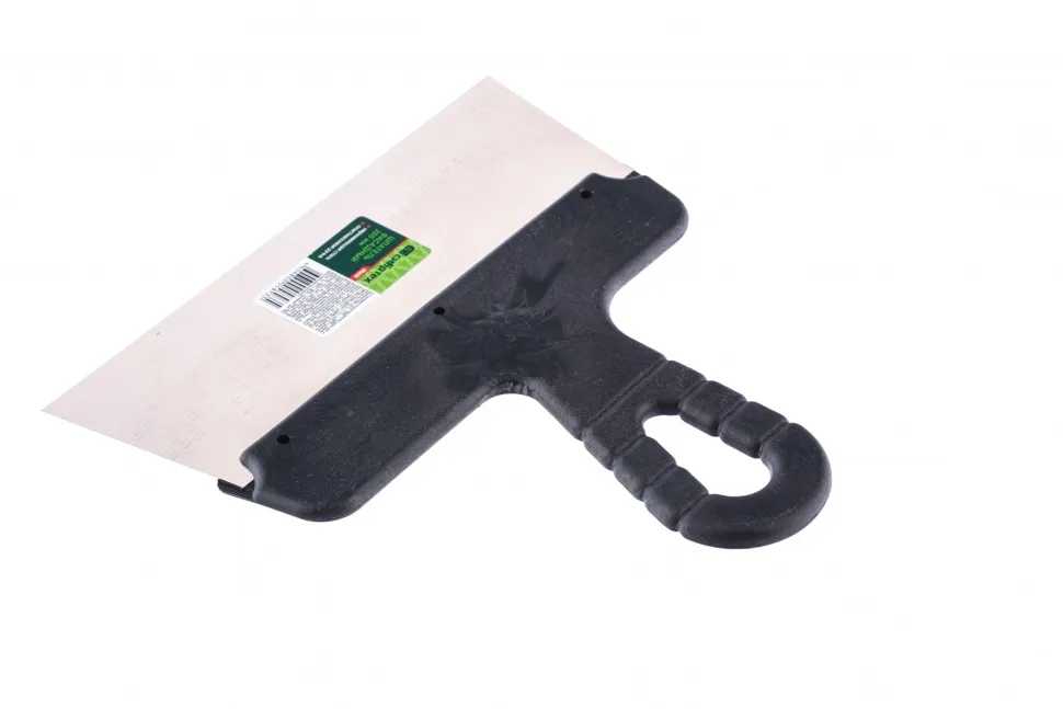 Шпатель фасадный Сибртех 85438 с полотном шириной 200 мм из нержавеющей стали и пластмассовой ручкой рассчитана на нанесение, выравнивание и сглаживание строительных растворов и смесей. Актуальна при проведении ремонтно-отделочных работ, подходит для начинающих и профессиональных мастеров.ПреимуществаУпругое рабочее полотно быстро принимает первоначальную форму даже после сильных изгибающих нагрузок.Ровное лезвие и наклонная рукоятка облегчают нанесение и выравнивание составов.Рабочее полотно из нержавеющей стали устойчиво к образованию коррозии.Эргономичная пластмассовая рукоятка с рельефной поверхностью делает работу более комфортной.В рукоятке предусмотрено отверстие для организации подвесного хранения.Надежное сцепление полотна с рукояткой обеспечивает долговечность инструмента.