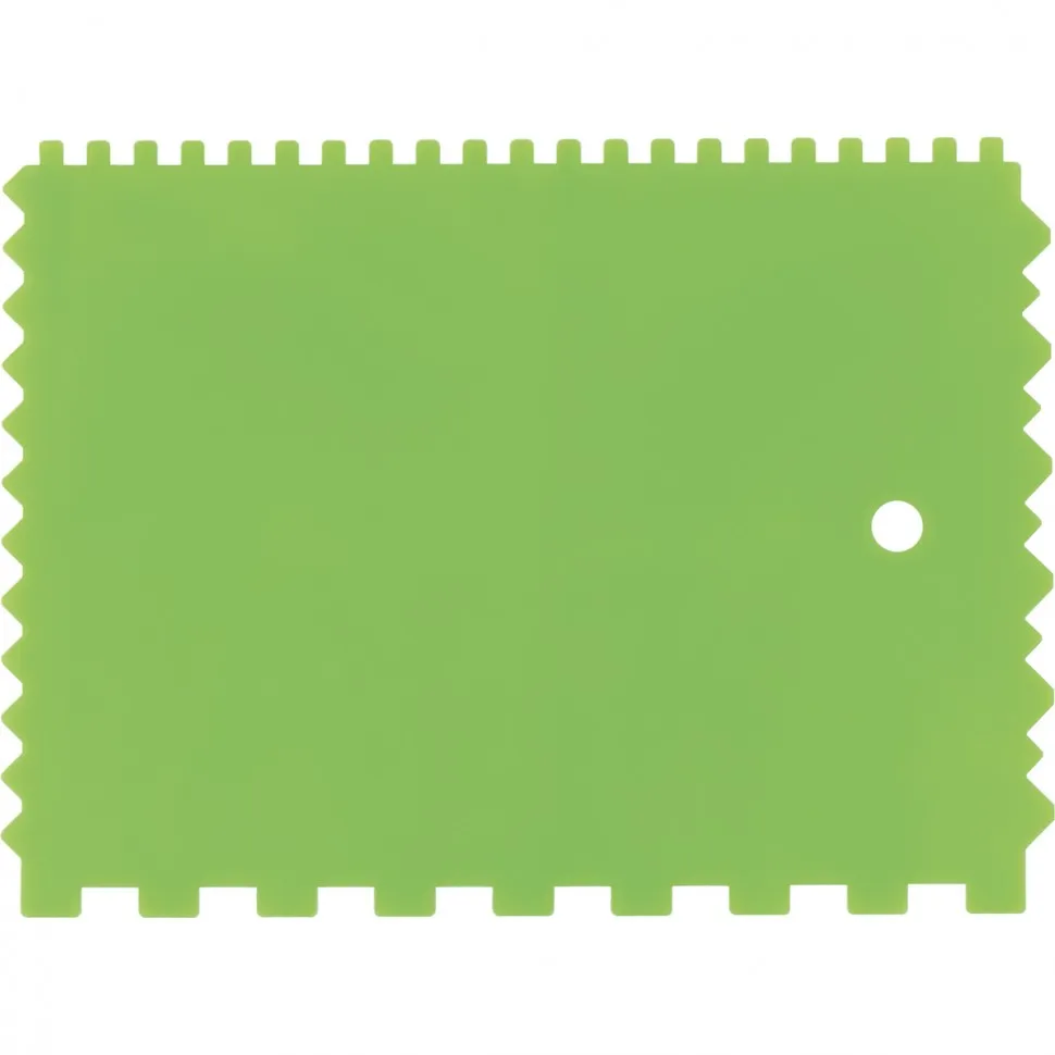 Зубчатый пластмассовый шпатель для клея Сибртех 86018 размером 130 х 170 мм применяется в процессе отделочных и ремонтных работ. Обеспечивает равномерное нанесение плиточного клея на узкие поверхности и надежное соединение с плиткой. Зубчатая рабочая кромка способствует снижению расхода клея.ПреимуществаНадежность — шпатель выполнен из прочной пластмассы.Универсальность — инструмент имеет 4 рабочие стороны с зубьями разной формы и размера.Небольшой вес 35 г — шпателем комфортно работать на протяжении длительного времени.Подвесное хранение — инструмент имеет отверстие в рукоятке.