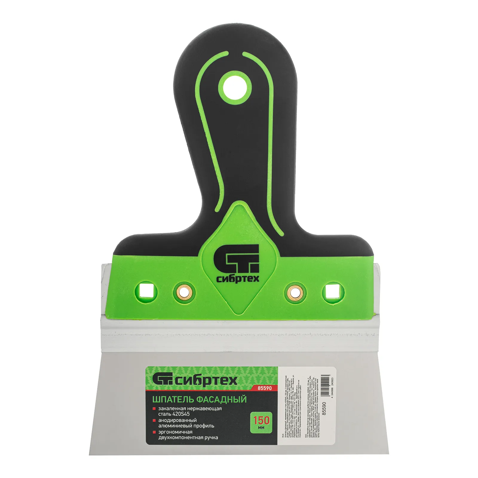 Шпатель фасадный с двухкомпонентной полимерной ручкой Сибртех 85590 — это надежный и эффективный инструмент, выполненный из нержавеющей стали 420S45. Предназначен для профессионального выравнивания поверхностей. Благодаря прочности и качественному исполнению обладает высокой производительностью и долгим сроком службы.ПреимуществаУстойчивость к износу и образованию коррозии — полотно выполнено из технологичной нержавеющей стали 420S45.Долговечность — алюминиевое ребро жесткости повышает деформационную стойкость.Эргономичность — изогнутая двухкомпонентная рукоятка удобно лежит в руке и не выскальзывает из ладони.Простой уход — полотно легко очищается от остатков раствора.Возможность подвесного хранения — в рукоятке предусмотрено отверстие.