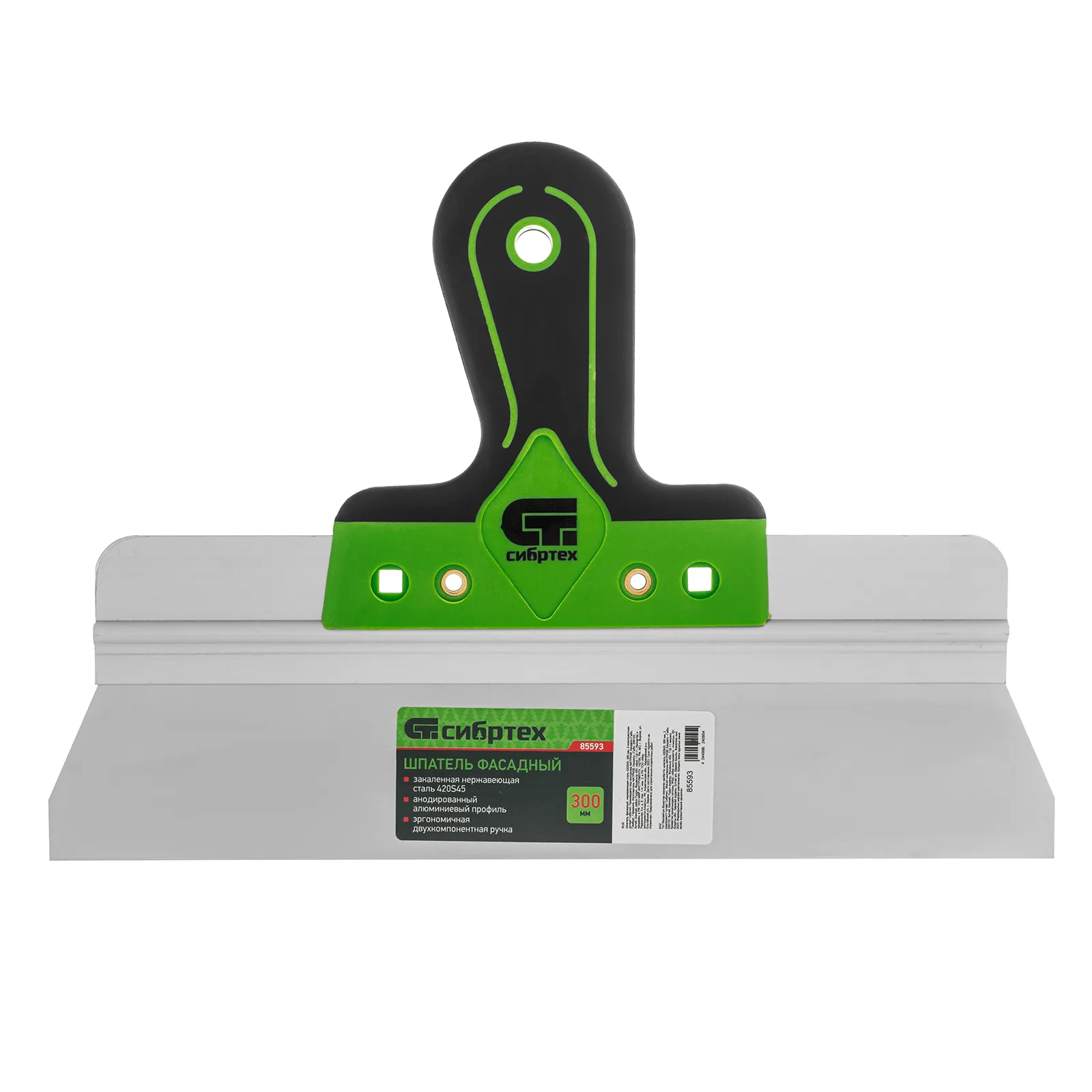 Шпатель фасадный с двухкомпонентной полимерной ручкой Сибртех 85593 — это надежный и эффективный инструмент, выполненный из нержавеющей стали 420S45. Предназначен для профессионального выравнивания поверхностей. Благодаря прочности и качественному исполнению обладает высокой производительностью и долгим сроком службы.ПреимуществаУстойчивость к износу и образованию коррозии — полотно выполнено из технологичной нержавеющей стали 420S45.Долговечность — алюминиевое ребро жесткости повышает деформационную стойкость.Эргономичность — изогнутая двухкомпонентная рукоятка удобно лежит в руке и не выскальзывает из ладони.Простой уход — полотно легко очищается от остатков раствора.Возможность подвесного хранения — в рукоятке предусмотрено отверстие.