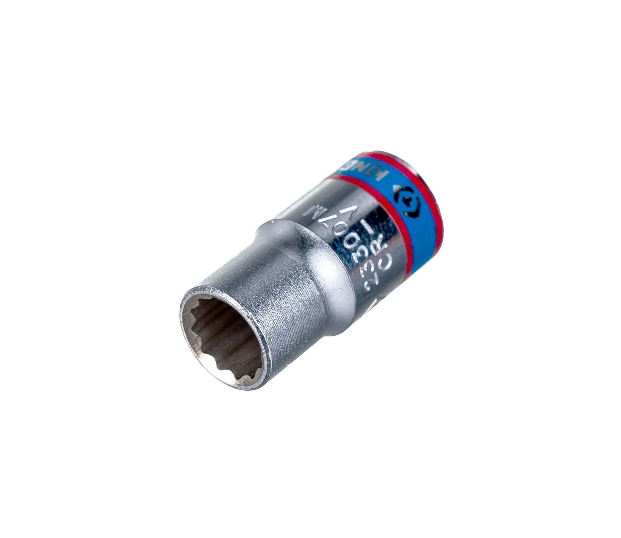 Двенадцатигранная стандартная (короткая) торцевая головка King Tony 233007M профессионального качества рабочим размером 7 миллиметров с посадочным квадратом 1/4 дюйма предназначена для монтажно-демонтажных работ с особо мелким крепежом.