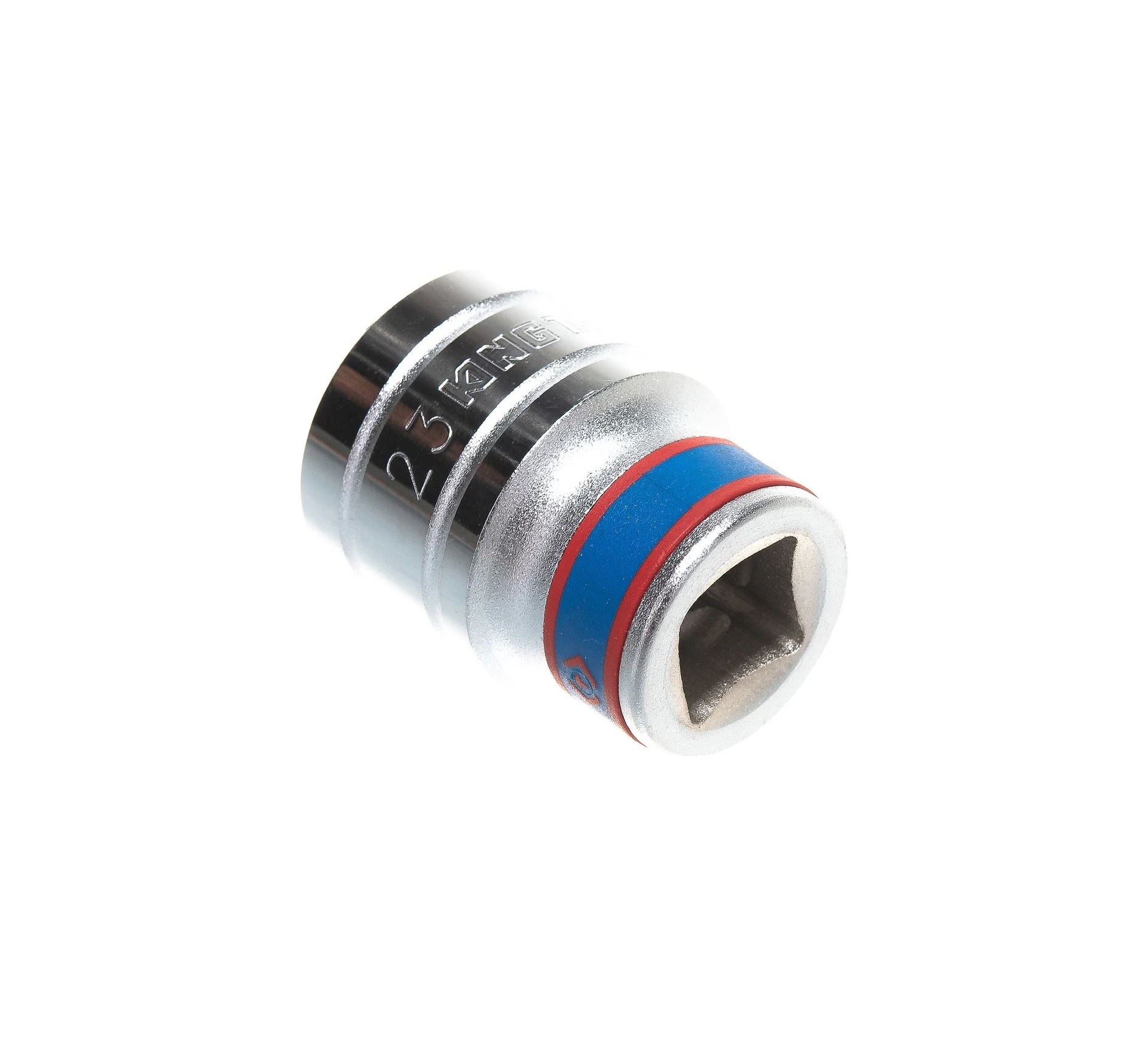Двенадцатигранная стандартная (короткая) торцевая головка King Tony 433023M профессионального качества рабочим размером 23 миллиметра с посадочным квадратом 1/2 дюйма