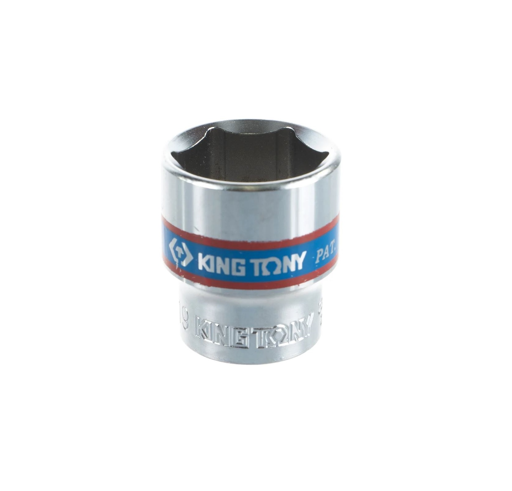 Шестигранная стандартная (короткая) торцевая головка King Tony 333519M профессионального качества рабочим размером 19 миллиметров с посадочным квадратом 3/8 дюйма предназначена для монтажно демонтажных работ с крепежом.