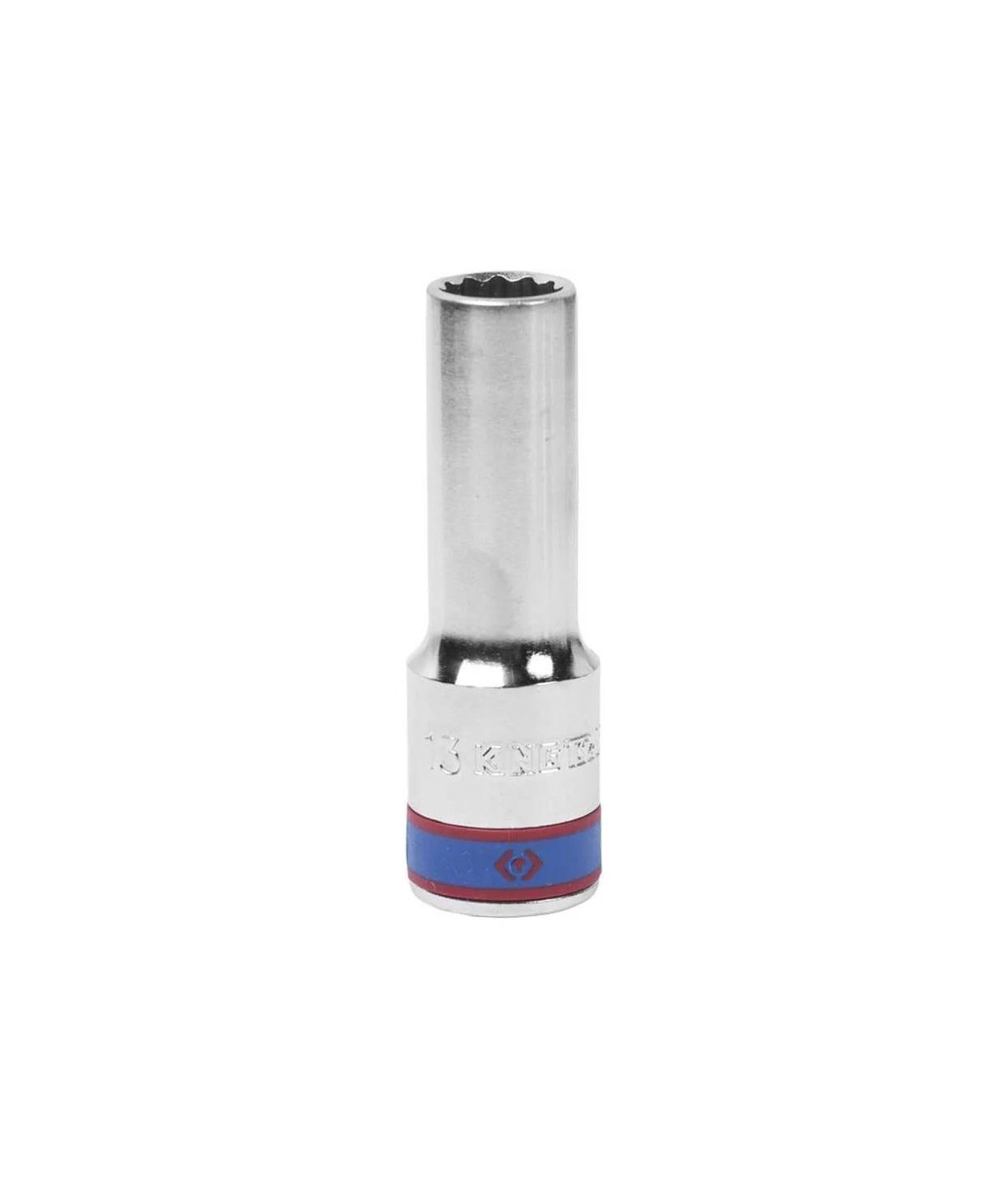 Глубокая двенадцатигранная торцевая головка king tony 423013m профессионального качества рабочим размером 13 мм с посадочным квадратом 1/2 дюйма предназначена для монтажно демонтажных работ с резьбовым крепежом в автосервисах, на станциях технического обслуживания автомобилей (стoа), других предприятиях, специализирующихся на ремонте транспортных средств, а также в частных гаражах продвинутых автолюбителей.
