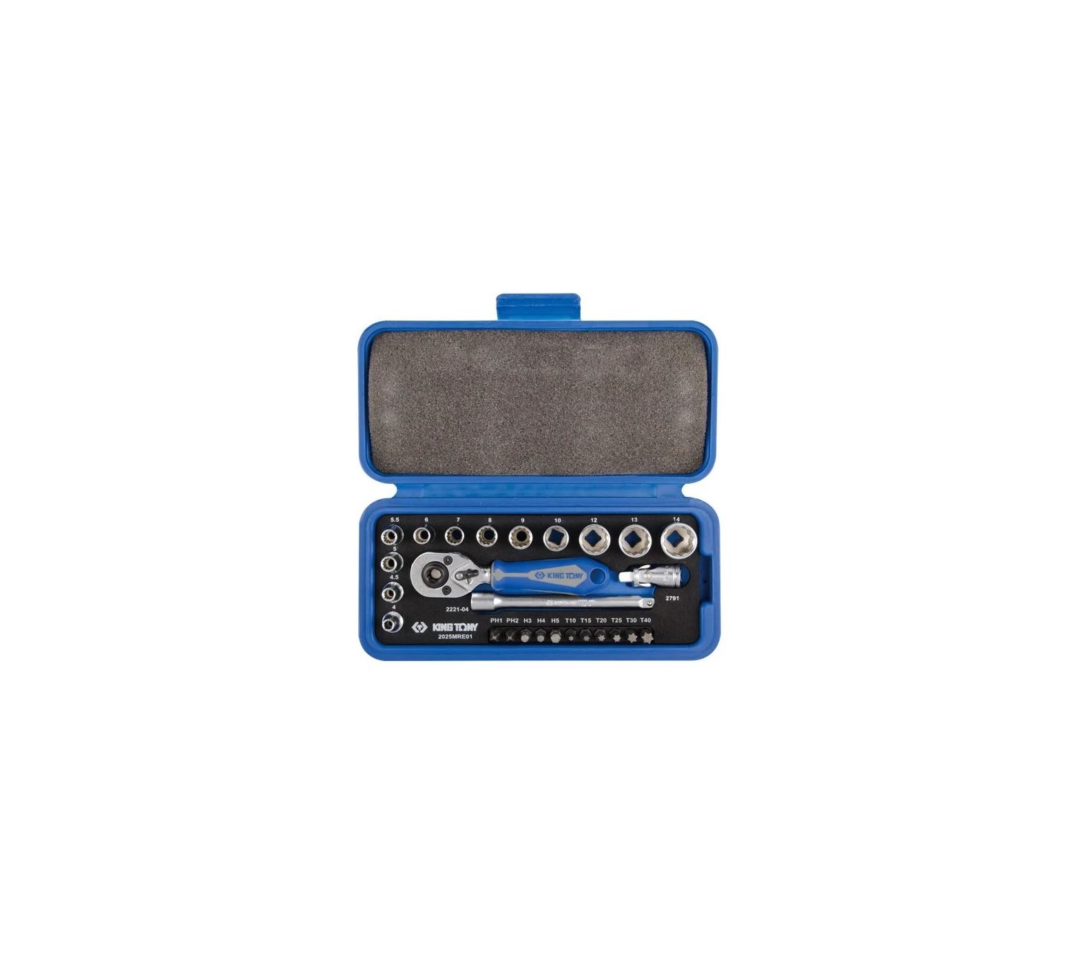 Набор торцевых головок с принадлежностями (1/4", двенадцатигранные, 4-14 мм, 26 предметов) King Tony 2025MRE01