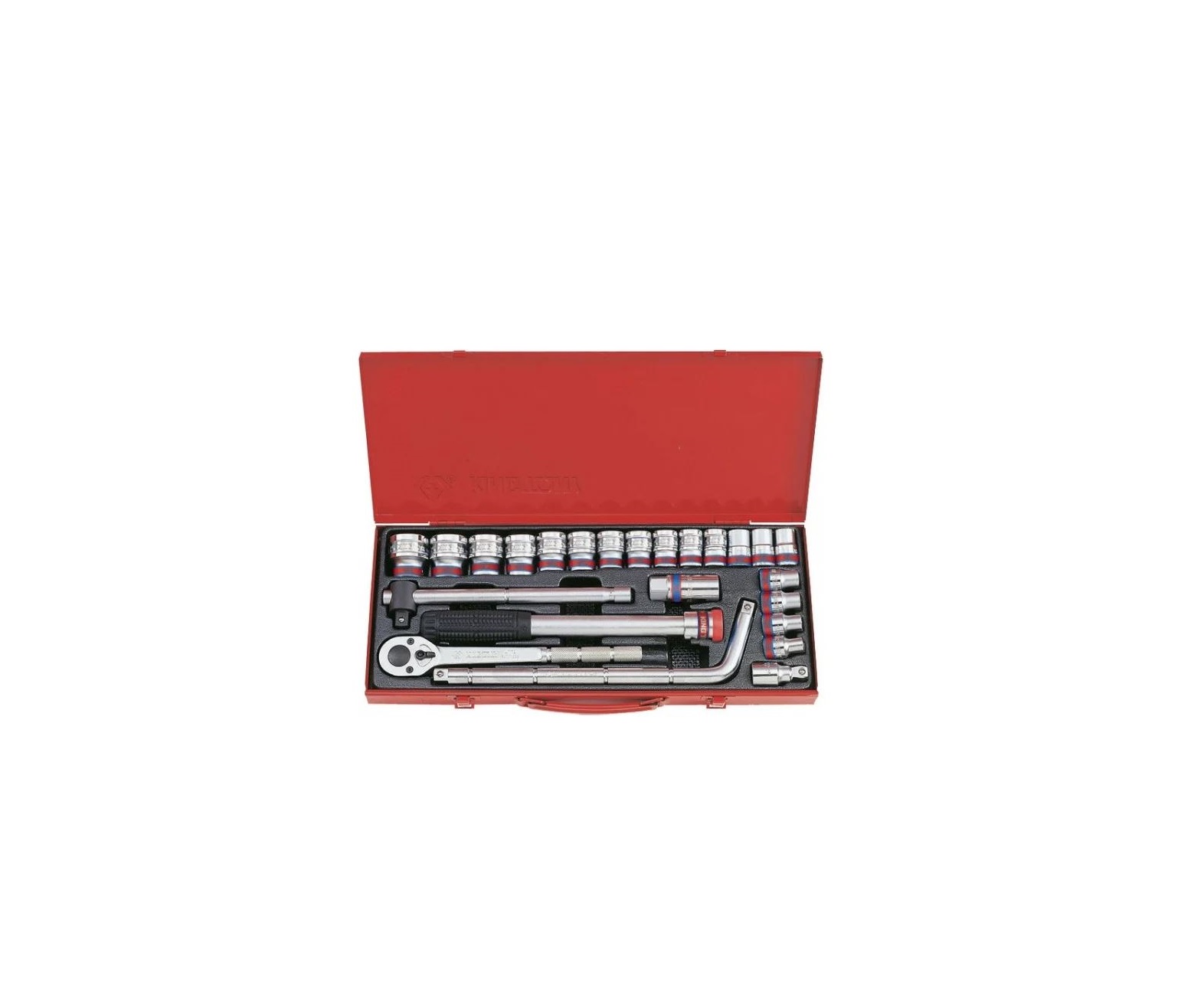 Набор инструментов торцевых головок 1/2 дюйма 3/8-1&1/4 дюйма, 24 предмета king tony 4033sr предназначен для использования как на станциях технического обслуживания автомобилей и т. п. предприятиях, так и в частных гаражах.