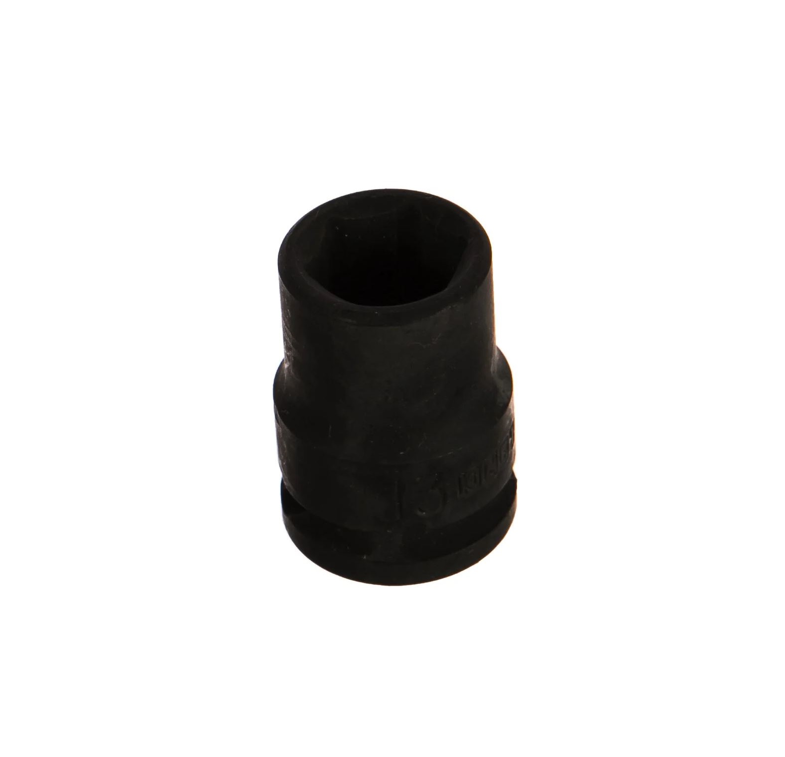 Короткая ударная шестигранная торцевая головка профессионального качества с рабочим размером 13 мм и посадочным квадратом 3/8 дюйма предназначена для передачи крутящего момента от ударных гайковертов или других приводов на гайки и болты, в том числе высокопрочные и приржавевшие. Инструмент соответствует требованиям международных стандартов DIN 3129, ISO 2725-2.