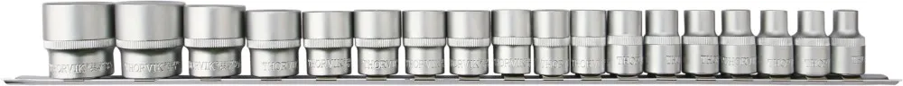 Торцевые головки 1/2"DR на держателе Thorvik® изготовлены с применением технологий, позволяющих передавать усилия, превышающие расчетные по современным стандартам на 30%. Широкий диапазон размеров, типов и профилей, высокая точность обработки, качественная хромованадиевая сталь и устойчивое хромоникелевое покрытие делают инструмент надежным и долговечным.