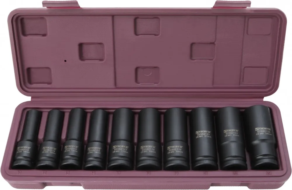 Торцевые головки Thorvik изготовлены с применением технологий, позволяющих передавать усилия, превышающие расчетные по современным стандартам на 30%. Широкий диапазон размеров, типов и профилей, высокая точность обработки, качественная хромомолибденовая сталь (Cr-Mo) и устойчивое фосфатированное покрытие делают инструмент надежным и долговечным. Имеют отверстие для фиксирующего штифта и выточка для уплотнительного кольца.