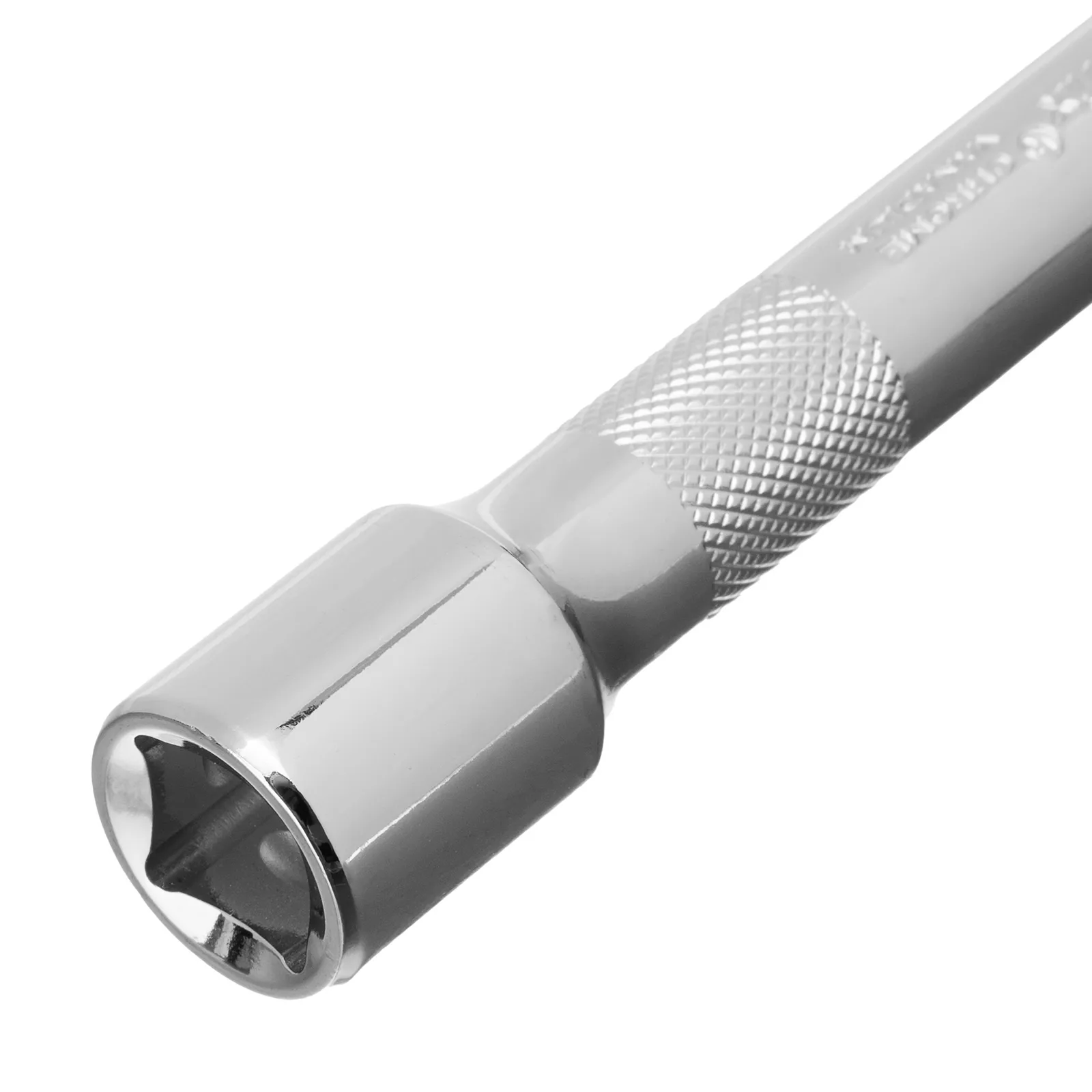 Удлинитель Matrix 13972 с присоединительным квадратом 1/2", длиной 125 мм, из стали CrV, с покрытием «полированный хром», облегчает монтаж и демонтаж резьбового крепежа в узких и углубленных местах. Позволяет присоединить карданный шарнир, торцевую головку и другие насадки с посадочным размером 1/2". Удлинитель будет полезен в слесарной и авторемонтной мастерской.