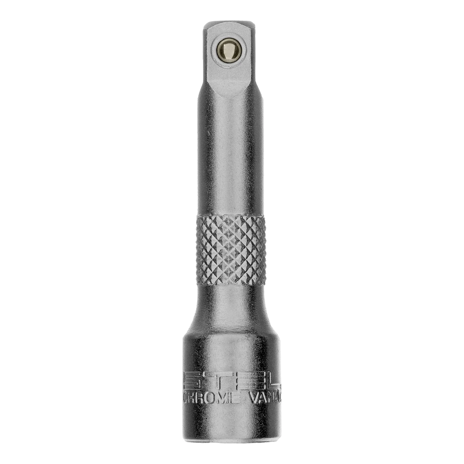 Удлинитель Stels 13902 с присоединительным квадратом 1/4 дюйма, длиной 50 мм, из стали CrV, облегчает использование в узких местах и углублениях торцевых головок и других насадок для работы с резьбовыми соединениями. Обладает высокой деформационной стойкостью, поскольку изготовлен из прочной стали хромованадиевой группы. Используется в слесарном деле и для ремонта автомобилей.