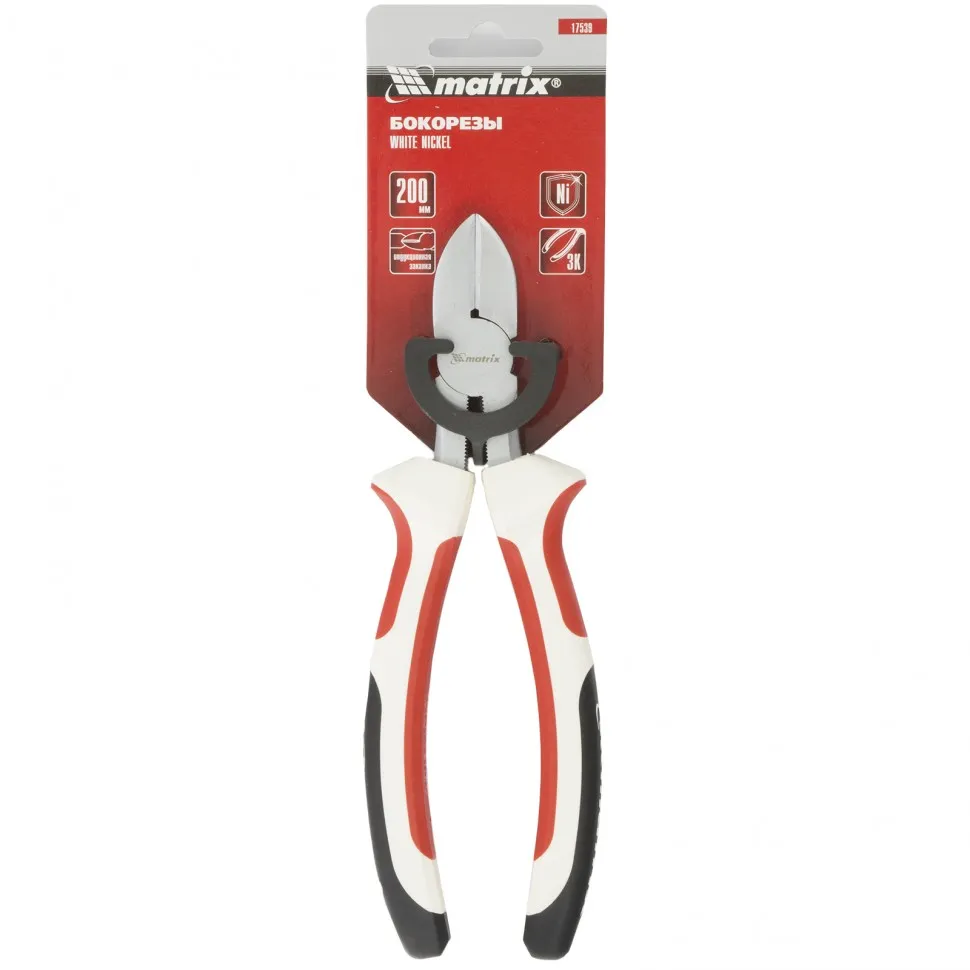 Никелированные бокорезы Matrix White Nickel 17539 длиной 200 мм, с трехкомпонентными рукоятками, предназначены для проведения слесарно-монтажных работ. Инструмент позволяет быстро и без особых усилий перерезать пластиковые и металлические детали, проволоку, а также перекусывать кабели и провода.ПреимуществаАнтикоррозийные свойства — никелированное покрытие обеспечивает защиту от разрушения и долгий срок службы инструмента.Надежный хват — эргономичные трехкомпонентные рукоятки удобно лежат в руке и снижают усталость при длительной работе.Безопасная эксплуатация — ограничители на ручках не дают руке соскользнуть к режущим частям.