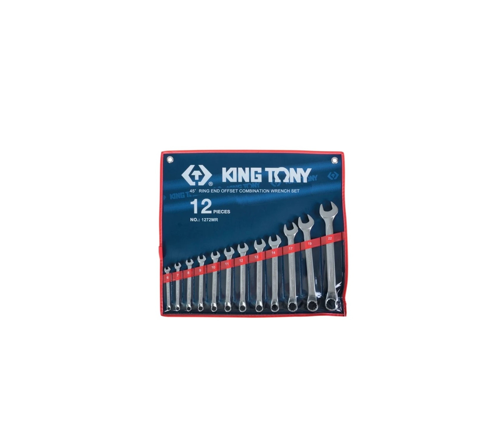 Технические характеристики набора комбинированных ключей KING TONY 1272MR: Тип: рожковые/накидные Размер min: 6 мм Размер max: 22 мм Трещотка: нет Материал: CrV Количество в наборе: 12 шт Вес нетто: 1,109 кг Форма: прямой Вид упаковки: чехол (сумка)