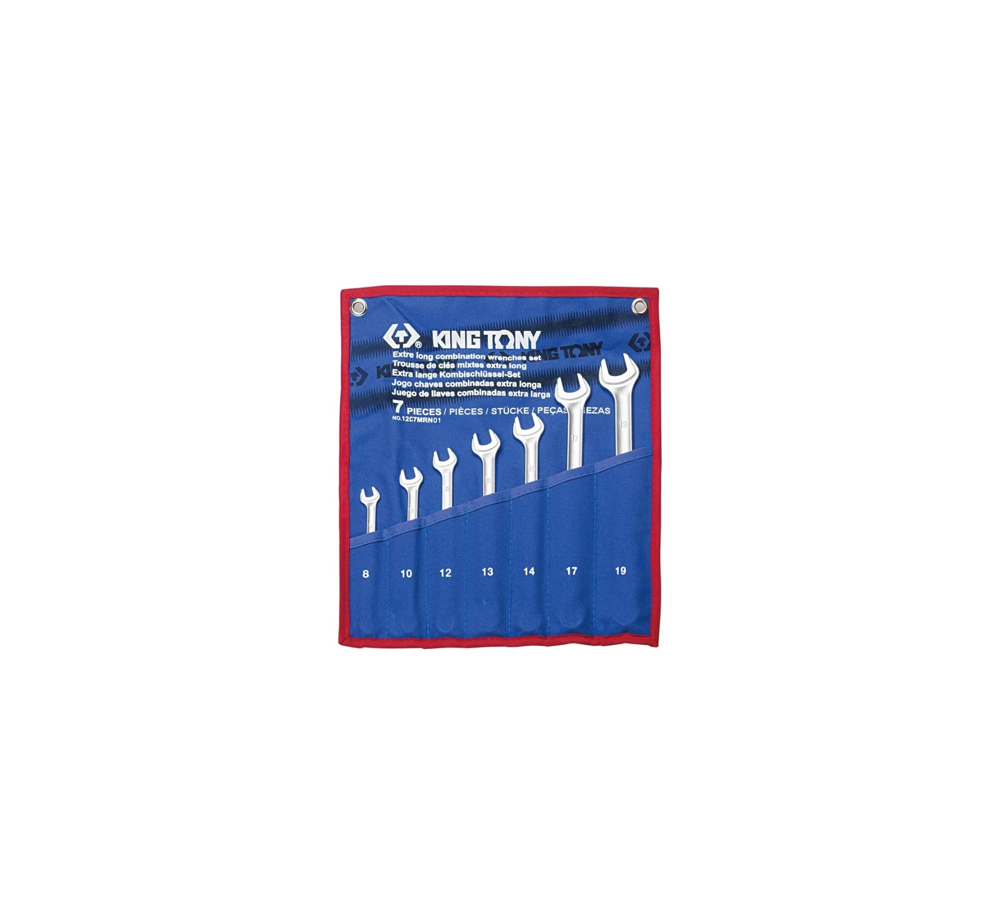 Комплектация Ключи комбинированные, удлиненные 1061 8, 10, 12, 13, 14, 17, 19 мм Количество предметов: 7 Материалы: сталь Cr-V, теторон (чехол) Вес: 0,77 кг