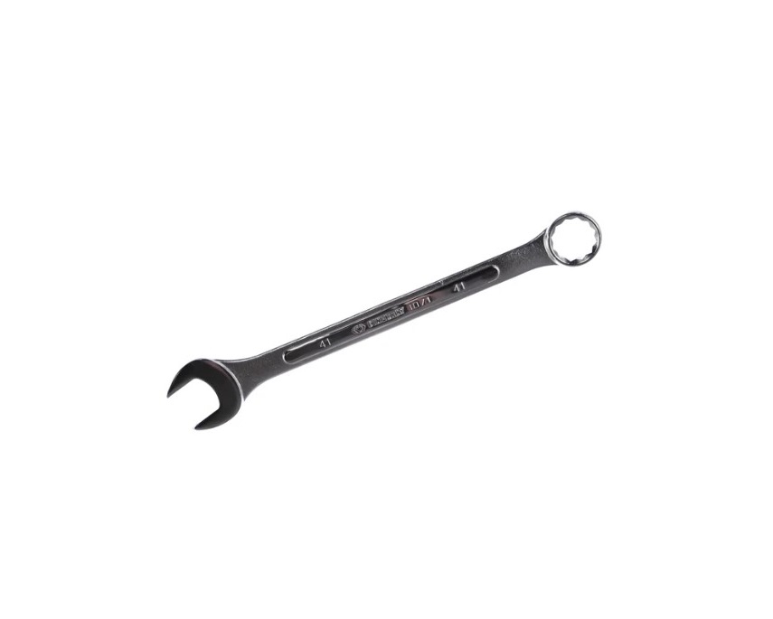 Комбинированный ключ 41 мм King Tony 1071-41 имеет двустороннюю конструкцию, где с одной стороны расположена рожковая головка, с другой — накидная. Ключ оснащен широкими зевами, он предназначен для использования в профессиональных мастерских для работы с винтами и гайками больших размеров.