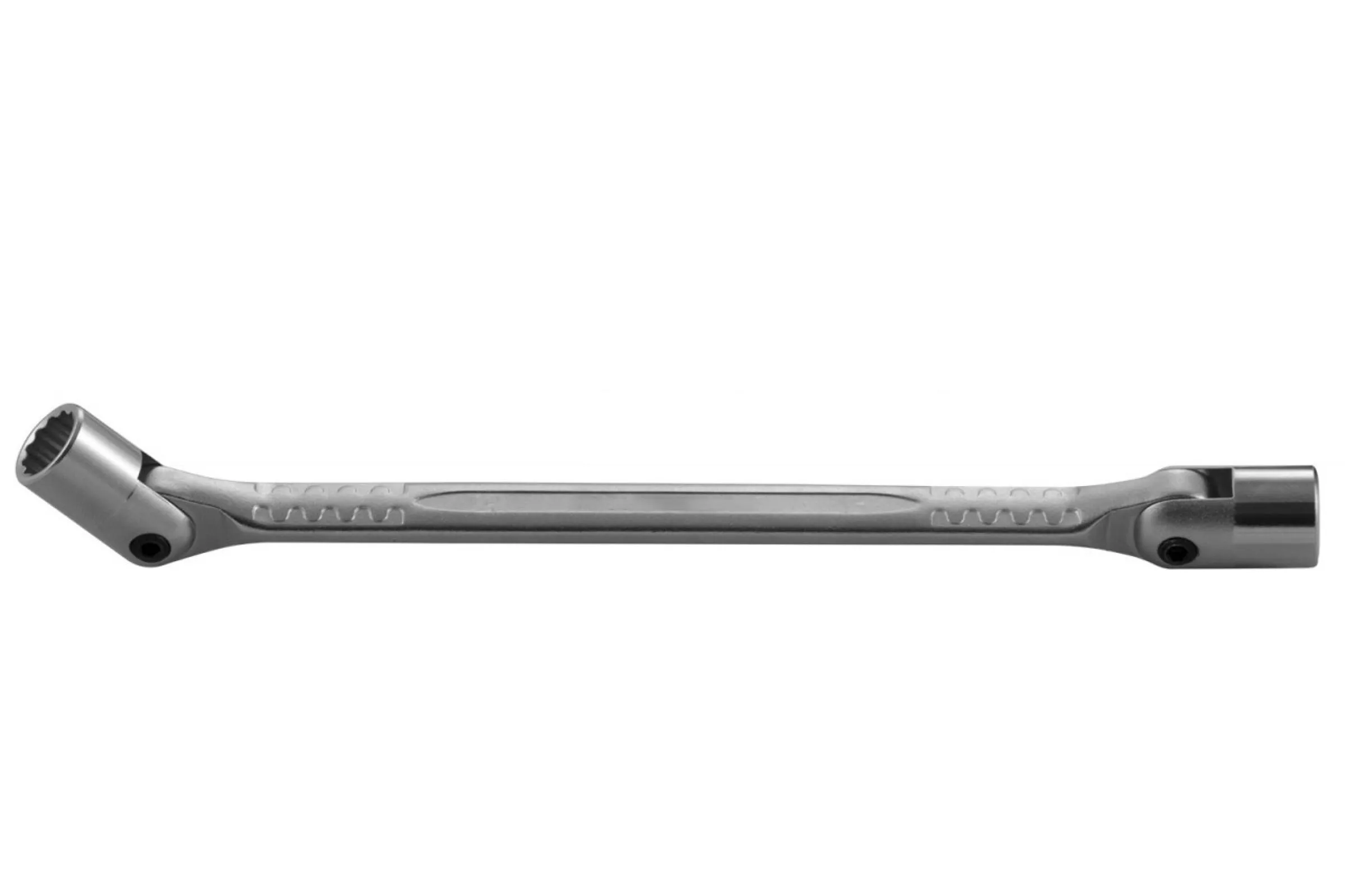 Прочное основание головки имеет увеличенную ширину. Это удобно при работе с большим усилием. Обеспечивает увеличенный срок службы при активной эксплуатации инструмента. Тело выполнено из CrV стали - защищено от коррозии.