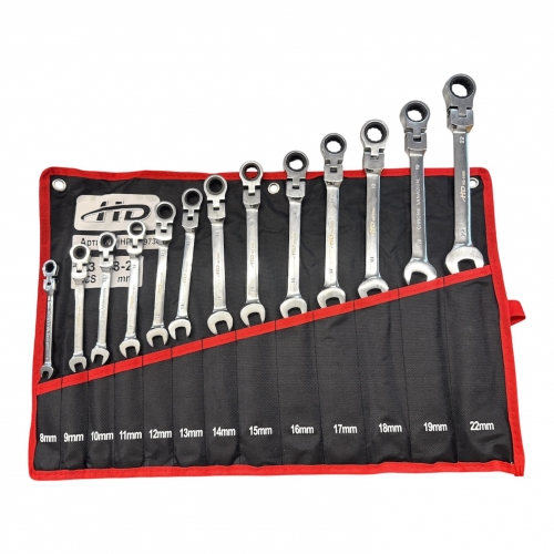 Ключи комбинированные рожково-накидные шарнирные с трещоткой 8-22мм CrV, набор 13 предметов "H-D"