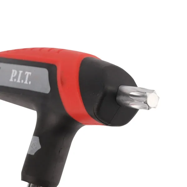 Т-образная форма рукоятки позволяет прикладывать большее усилие, а наличие второго короткого стержня поможет для работы в труднодоступных местах.