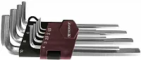 Набор ключей торцевых шестигранных, H1.5-H10, 9 предметов. Торцевые Г-образные ключи обеспечивают доступ к крепежу в ограниченном рабочем пространстве. Изготовлены из легированной хромованадиевой стали по технологии, позволяющей при использовании прилагать высокие нагрузки.