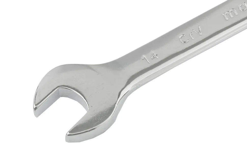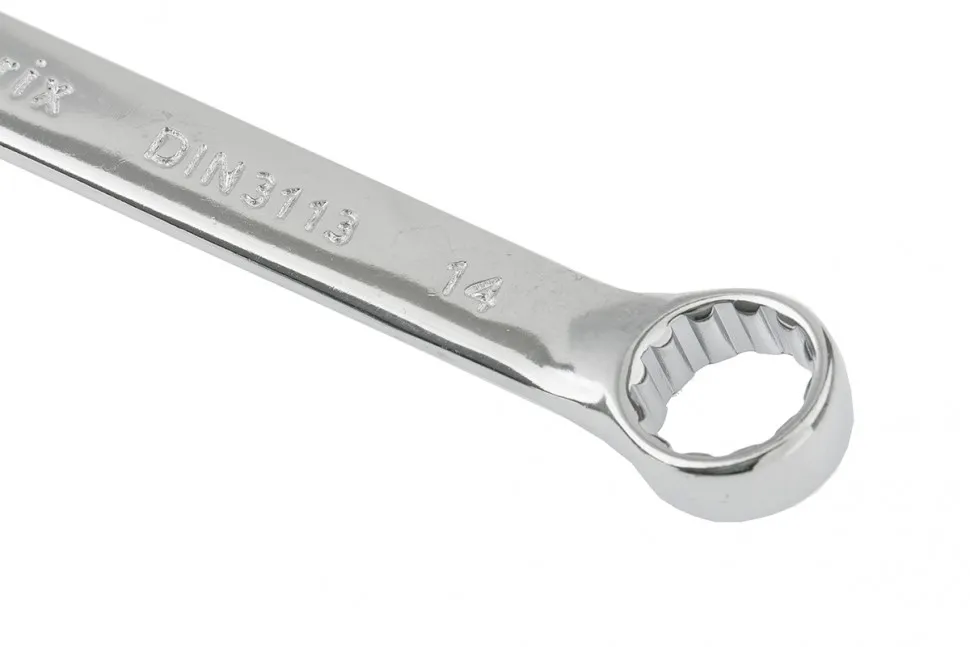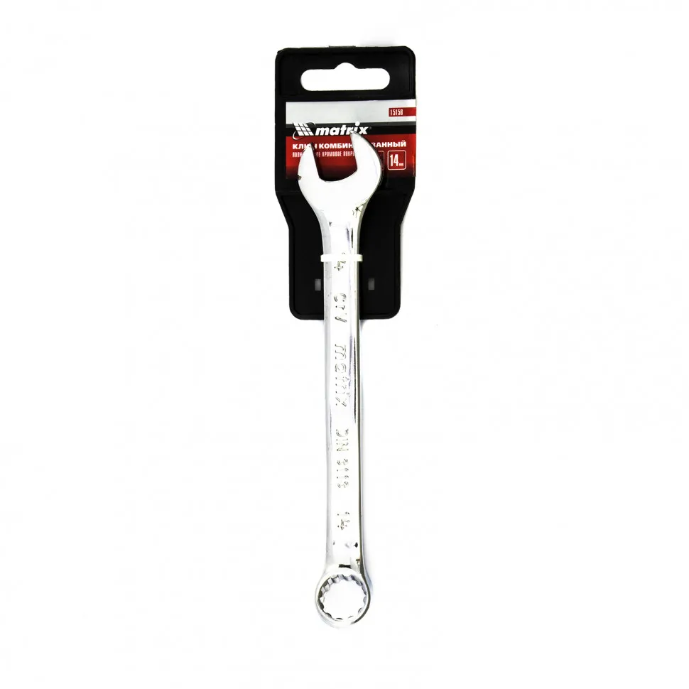 Ключ комбинированный Matrix 15158 из стали CrV, 14 мм, с покрытием «полированный хром», пригодится при проведении ремонтных работ дома или в гараже. С его помощью можно осуществлять быстрый монтаж и демонтаж крепежных элементов. Кольцевой зев обеспечивает удобство работы благодаря углу наклона 15 градусов относительно плоскости инструмента.ПреимуществаКлюч из хромованадиевой стали обладает необходимыми прочностными характеристиками и высокой сопротивляемостью деформации.Рабочая часть ключа прошла закалку до твердости 45 HRC в соответствии с требованиями ГОСТа.Полированное хромовое покрытие защищает ключ от образования коррозии.Накидные части с 12-гранным профилем позволяют охватить крепеж по всей поверхности, за счет чего снижается риск деформации его граней.Ключ удобно хранить и он не потеряется во время транспортировки, т.к. упакован в пластиковый держатель.