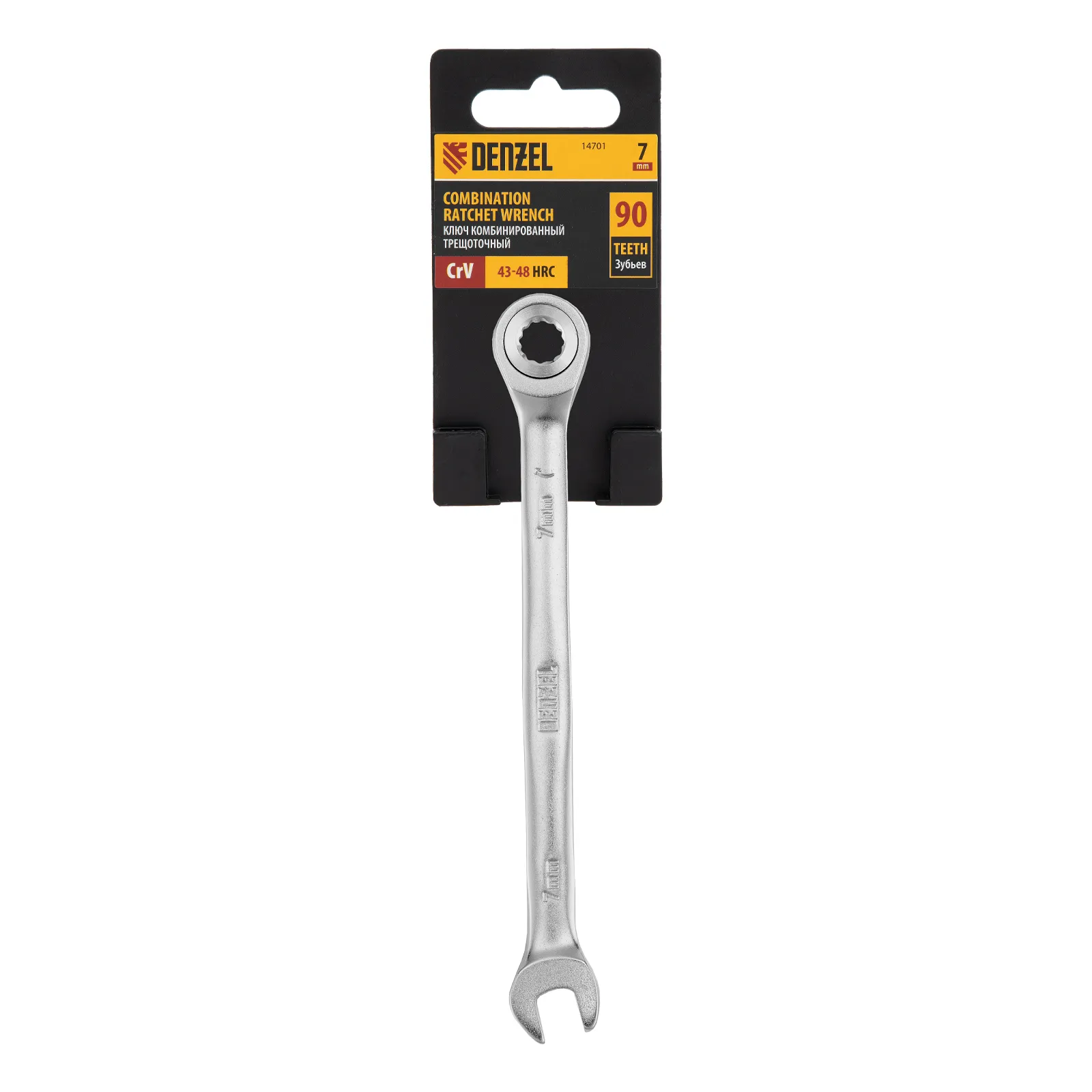 Комбинированный трещоточный ключ Denzel 14701 из стали CrV, с защитным покрытием «матовый хром», предназначен для работы с резьбовым крепежом размером 7 мм. Рожковый профиль упрощает работу в местах, где использование накидной рабочей части невозможно. 12-гранный профиль кольцевой части подходит для крепежа с разным профилем. Хромированное кольцо обеспечивает сохранность и долговечность инструмента. Ключ будет полезен дома, в мастерской и гараже.