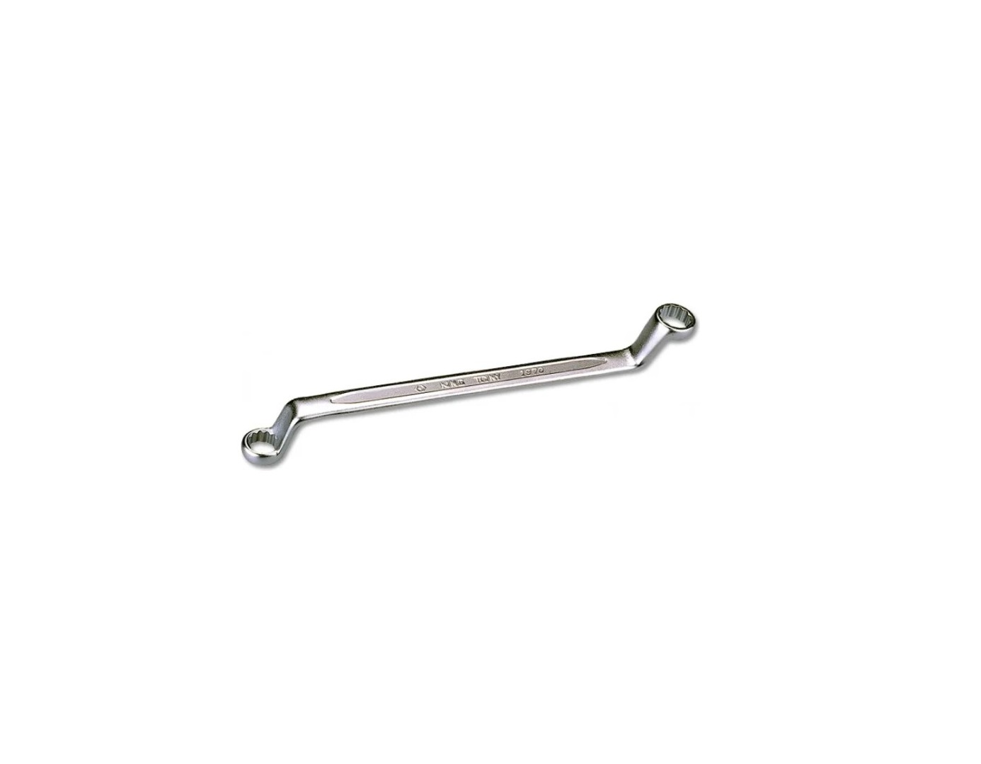 Описание: Ключи относятся к накидному типу, двухразмерные, имеют 12-гранный рабочий профиль и специальный изгиб под углом 75°, позволяющий работать с крепежом в углублении или других труднодоступных местах.