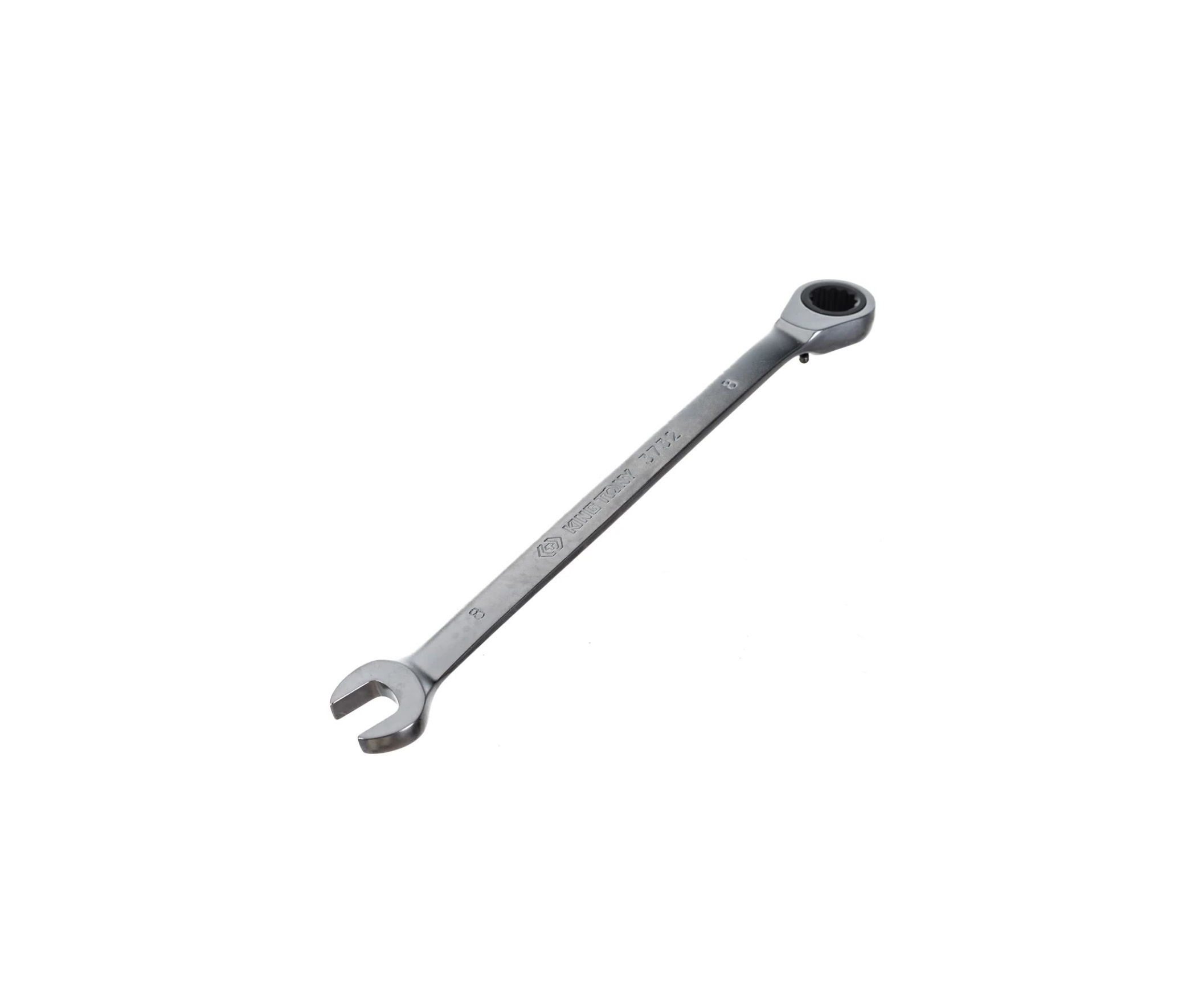 Особенности: Специальный изгиб 15° позволит работать в местах с ограниченным доступом к крепежу; Шаг трещотки накидной части ключа - 5° (72 зубца); Флажковый переключатель; 12-тигранный профиль накидной части универсален в работе с головками болтов или гайками как 6-ти, так и 12-тигранного профиля.