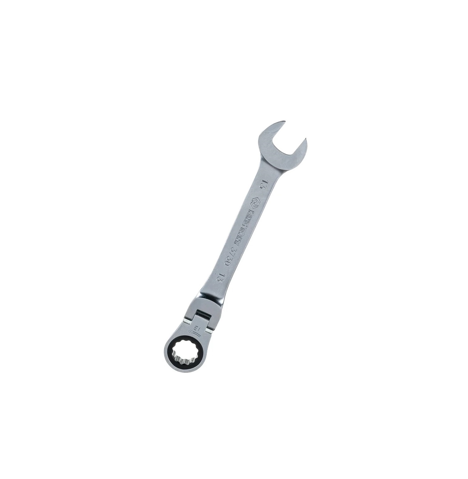 Особенности: Специальный изгиб 15° позволит работать в местах с ограниченным доступом к крепежу; Шаг трещотки накидной части ключа - 5° (72 зубца); Накидная часть на шарнире. Ход шарнира 180°; 12-тигранный профиль накидной части универсален в работе с головками болтов или гайками как 6-ти, так и 12-тигранного профиля.