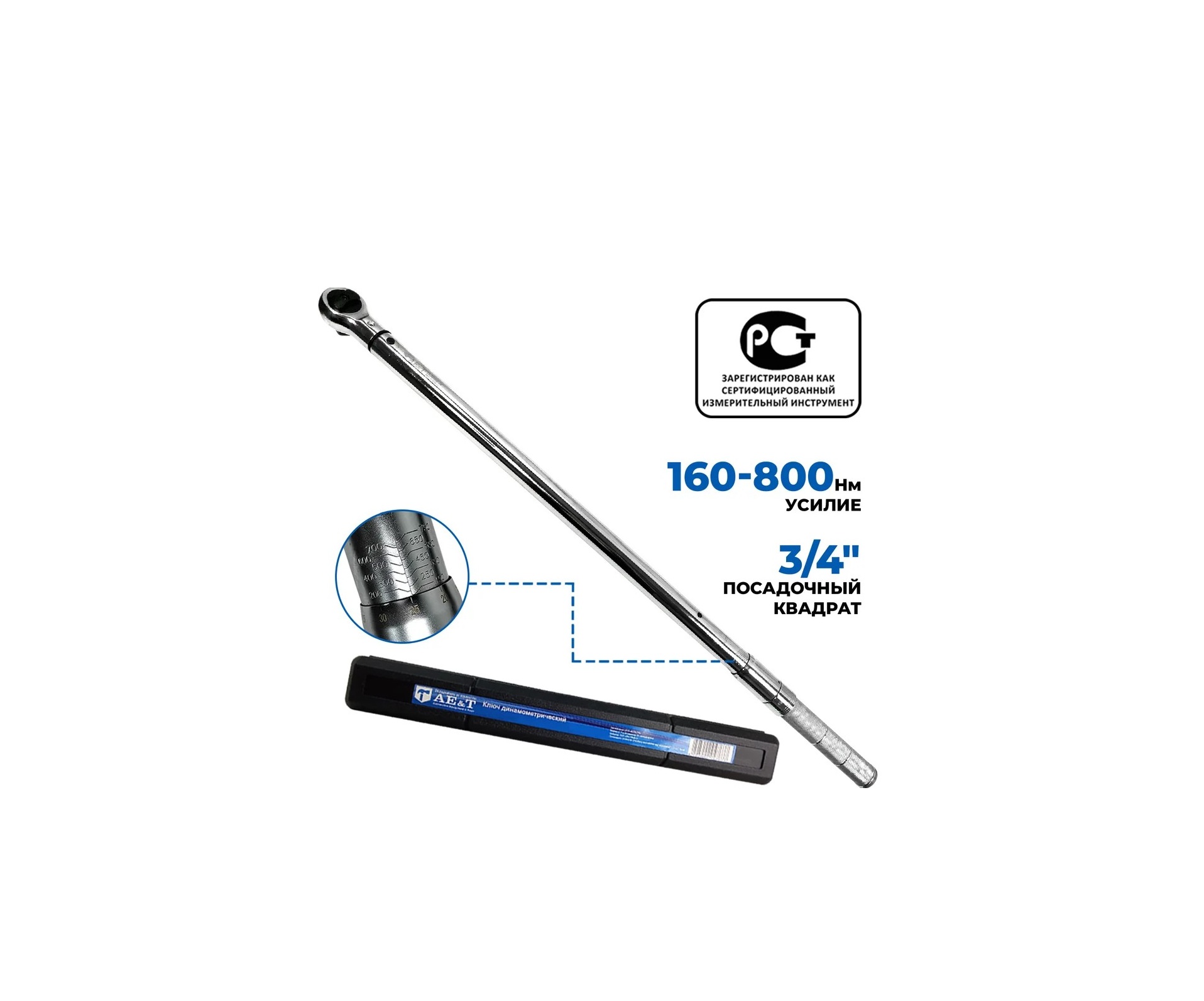 Ключ динамометрический TA-B0800-34 – продвинутый инструмент для затяжки мощных гаек с усилием от 160 до 800 Нм, которое можно четко настроить при помощи регулятора. Официально зарегистрирован как сертифицированный измерительный инструмент приказом Федерального агентства по техническому регулированию и метрологии №2971 от 23 декабря 2021 года.