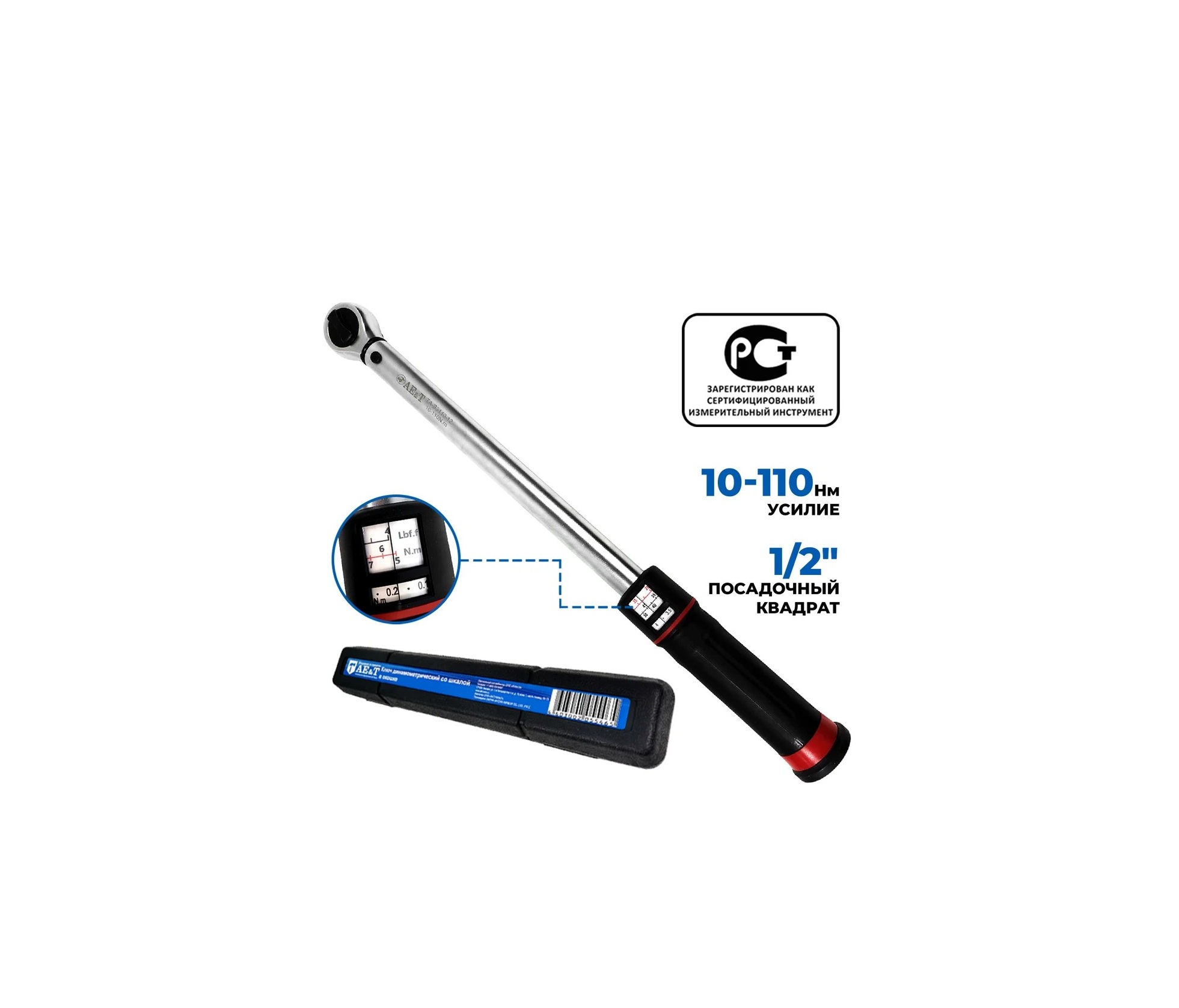 Ключ динамометрический (моментный) со шкалой в окошке на рукояти. Щелчковый. Имеет храповый механизм.