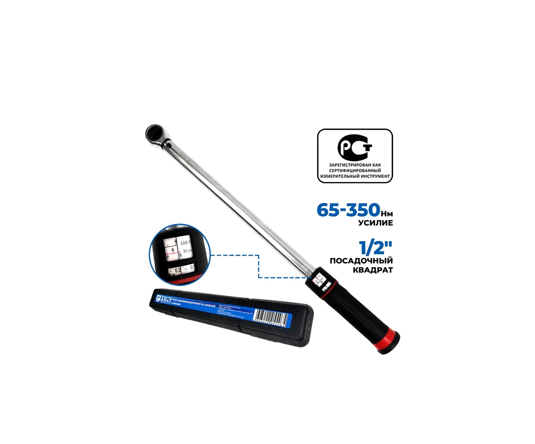Ключ динамометрический (моментный) со шкалой в окошке на рукояти. Щелчковый. Имеет храповый механизм.
