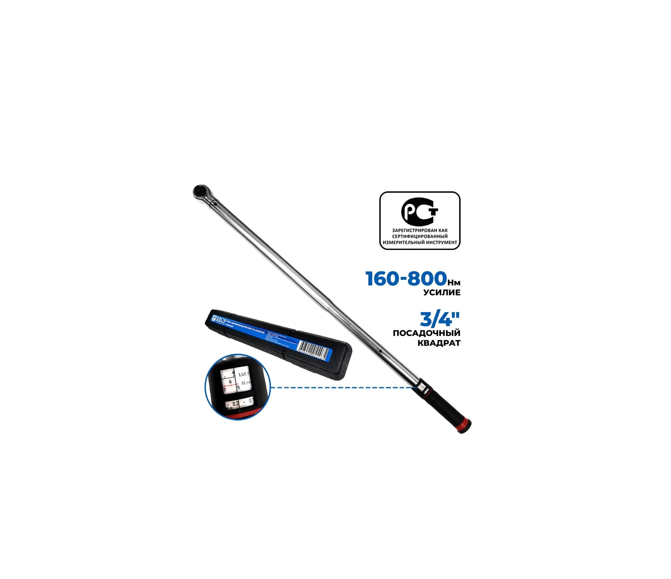 Ключ динамометрический (моментный) со шкалой в окошке на рукояти. Щелчковый. Имеет храповый механизм.
