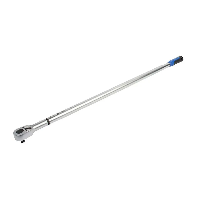 Ключ динамометрический 3/4”, с диапазоном 150-750 Нм предельный со встроенной трещоткой, тип NTW24-075R. Используется для контролируемой затяжки резьбовых соединений по часовой стрелке с диапазоном усилия от 150 до 750 Нм. При достижении установленного момента затяжки издается щелчок. Применяется на сборочном производстве, в машиностроении, электромашиностроении, при техническом обслуживании, ремонте промышленных изделий. Индикатор шкалы настройки оснащен встроенной линзой для легкого и удобного считывание. Предусмотрено колесо регулировки момента затяжки. Предохранительная кнопка фиксации колеса регулировки предотвращает случайный сброс настроек. Микрометрическая подача на колесе регулировки момента затяжки обеспечивает точную установку требуемого момента. Длина рычага 995 мм, длина ключа 1070 мм, шаг 2,5 Нм. Вес 5,85 кг. Внесен в Государственный реестр средств измерений.