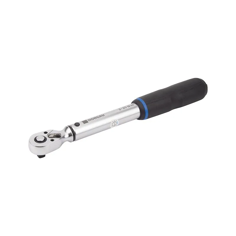 Ключ динамометрический 1/4” предельный бесшкальный со встроенной трещоткой, диапазон усилия 2-25 Нм, тип NTW21-025PR. На торце ключа располагается защитная крышка, которая предотвращает попадание грязи в механизм настройки ключа. Настройка момента затяжки осуществляется с помощью специального ключа и измерителя крутящего момента (ИКМ), которые приобретаются дополнительно. Прочная трубчатая конструкция со специально разработанным механизмом настройки крутящего момента предотвращает его преднамеренное изменение или случайный сброс настроек. Серийный номер расположен в зоне, защищенной от повреждения при работе с инструментом. Длина рычага 147 мм, длина ключа 200 мм, вес 0,26 кг. Внесен в Государственный реестр средств измерений. Поставляется в пластиковом тубусе.