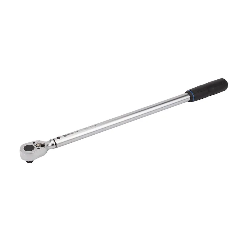 Ключ динамометрический 1/2” предельный бесшкальный со встроенной трещоткой, диапазон усилия 30-340 Нм, тип NTW23-340PR. Представляет собой прочную трубчатую конструкцию. На торце ключа располагается защитная крышка, которая предотвращает попадание грязи в механизм настройки ключа. Настройка крутящего момента осуществляется с помощью специального ключа и измерителя крутящего момента, что предотвращает несанкционированное изменение установленного значения. Специальный ключ и ИКМ приобретаются дополнительно. Специально разработанный механизм настройки крутящего момента предотвращает его преднамеренное изменение или случайный сброс настроек. Серийный номер расположен в зоне, защищенной от повреждения при работе с инструментом. Длина рычага 488 мм, длина ключа 571 мм, вес 1,44 кг. Внесен в Государственный реестр средств измерений. Поставляется в пластиковом тубусе.