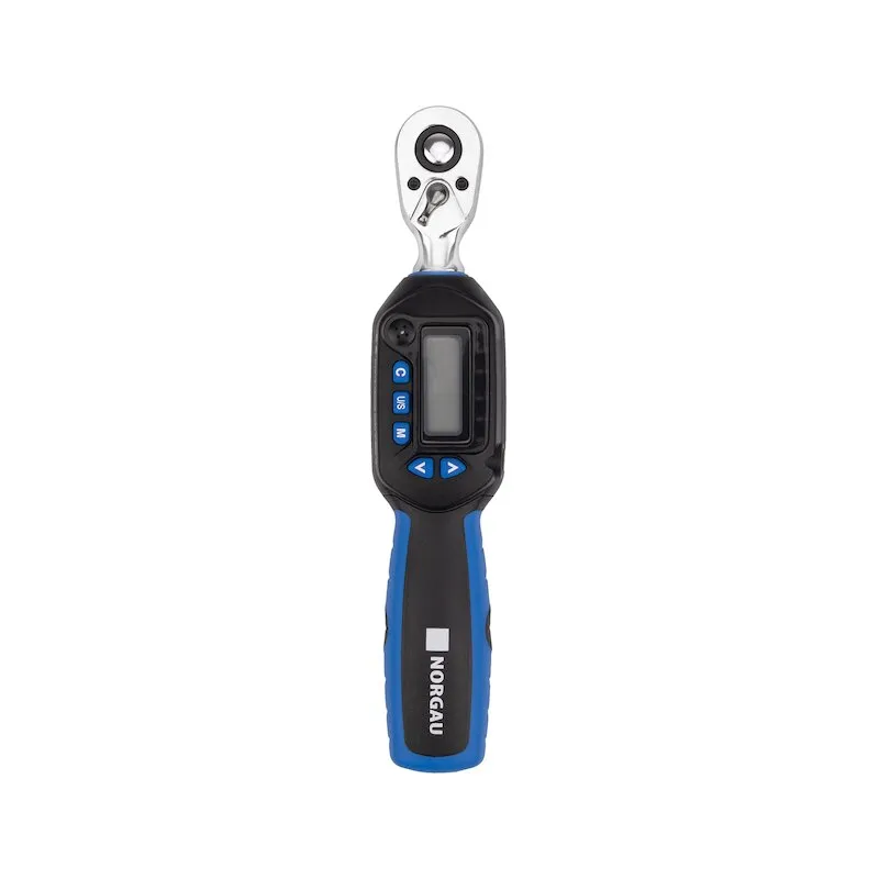 Ключ динамометрический электронный со встроенной трещоткой 3/8”, с диапазоном 12-60 Нм, тип NTE12-060RR с дискретностью: 0,1 Нм, внесен в Государственный реестр средств измерений. Имеет размер памяти (момент) 250 значений. Светодиоды индикации меняют цвет по мере достижения установленного значения. Расширенный угол обзора светодиодов ЖК-дисплей. Предусмотрен динамик и встроенный индикатор воды. Прорезиненная рукоятка обеспечивает работу без скольжения. Количество зубьев в трещоточном механизме - 48 зубьев. Пределы допускаемой относительной погрешности: по часовой стрелке ±3%, против часовой стрелки ±3,5%. Контролируемая затяжка резьбовых соединений с требуемым моментом. Контроль качества затянутого соединения. Работа в направлении по часовой и против часовой стрелки. Девять предустановок момента затяжки. Настройка различных рабочих параметров, сохранение данных, выбор единиц измерений, делает электронный ключ эффективным в работе.