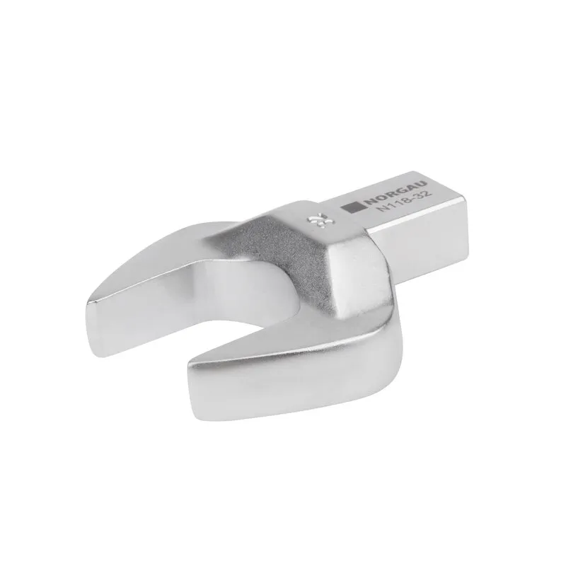 Насадка рожковая для динамометрического ключа 32 с открытым зевом. Применяется для прямоугольного привода 14х18. Изготовлена из кованной хромованадиевой стали. Быстросменная насадка позволяет использовать в труднодоступных местах. Обладает повышенной прочностью.