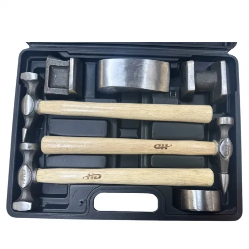 Набор инструмента для рихтовочных работ, 3 молотка с дер. ручками, 4 наковальни, кованый "H-D"