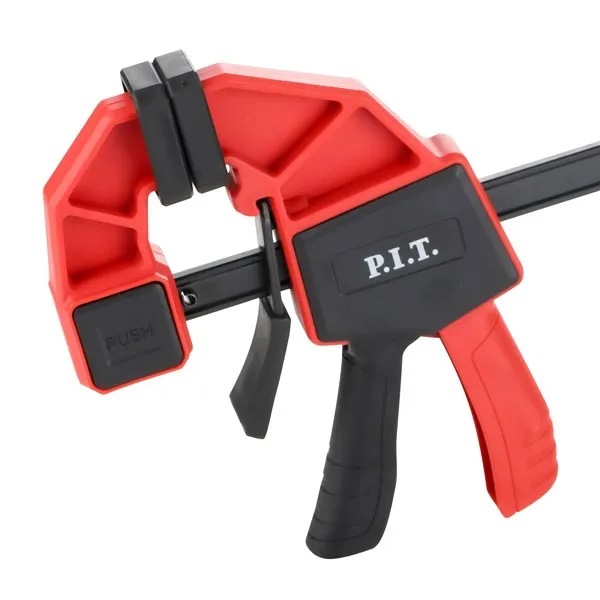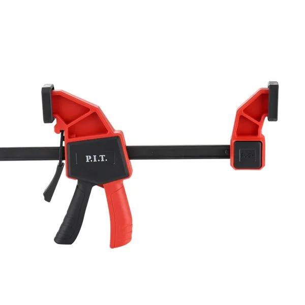 Быстрозажимная струбцина HCLQ01-0150 представляет собой удобное приспособление для фиксации заготовок. Опорная губка перемещается и фиксируется по всей длине направляющей при помощи рукоятки, а также может переставляться на другой конец направляющей, что позволяет использовать струбцину «на разжим».