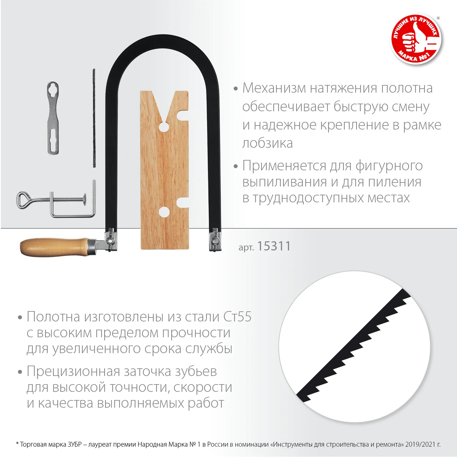 Для точного фигурного выпиливания в тонколистовых материалах: фанера, ДВП, пластиковые панели.