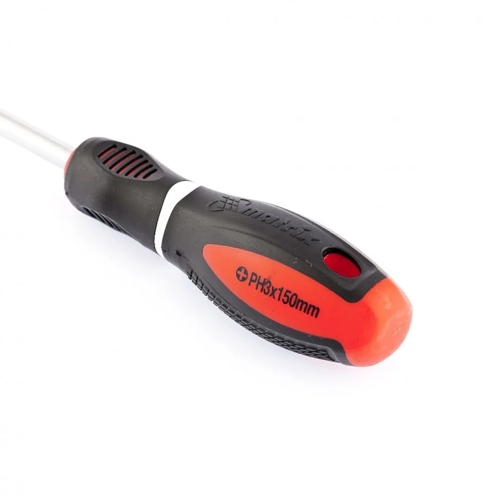 Отвертка Matrix «Era» 12090, PZ0 x 75 мм, из стали CrV, с 3-х компонентной рукояткой, поможет произвести монтаж/демонтаж крепежа Pozidriv «крест» с 4 дополнительными насечками. Она пригодится мастерам при решении профессиональных задач для выполнения монтажных, ремонтных и строительных работ. Длина стержня составляет 75 мм — этого достаточно для работы в углублениях и с легкодоступным крепежом.ПреимуществаЖало и стержень выполнены из высококачественной хромованадиевой стали, это придает им прочность и долговечность.Шлиц прошел индукционную закалку до твердости 50-55 HRC, благодаря чему снижается его стирание и риск залома.Фосфатное покрытие защищает жало от коррозии и обеспечивает улучшенное сцепление с головкой крепежа.Намагниченное жало гарантирует надежное удержание крепежа и позволяет освободить одну руку во время работы.Маркировка рабочих параметров на рукоятке повышает удобство использования отвертки.Трехкомпонентная рукоятка с насечками обеспечивает надежный хват и снижает усталость в руках.
