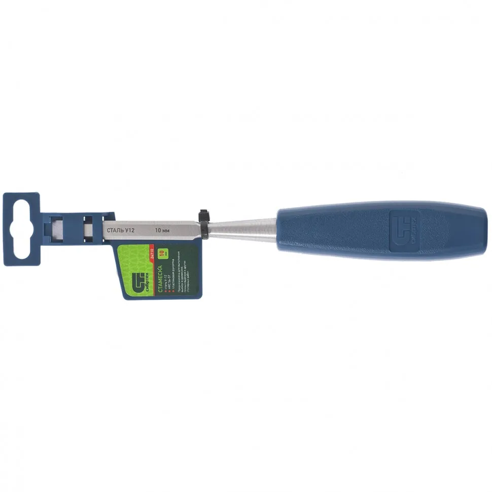 Стамеска Сибртех 24710 с пластиковой рукояткой и режущей частью шириной 10 мм подходит для обработки древесины любых пород. Предназначена для выборки небольших углублений, получения точных вырезов, снятия фасок и выполнения других столярно-плотницких работ. Инструмент будет полезен дома и в столярной мастерской.ПреимуществаПрочность и долговечность — рабочее полотно изготовлено из высококачественной конструкционной углеродистой стали 55.Эффективность и высокий ресурс — полотно закалено до твердости 56-57 HRC на 0,7 длины рабочей части, поэтому режущая кромка долго сохраняет остроту.Надежность и комфорт — ручка из ударопрочного пластика не выскальзывает из ладони и выдерживает длительное использование.