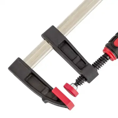 F-образная струбцина Matrix 20410, 1000 х 120 х 1100 мм, используется для зажима металлических, деревянных и других заготовок для их последующей обработки или сборки. Представляет собой штангу, на которой установлены 2 кронштейна — неподвижный и подвижный. Деталь помещается между ними и прижимается к губкам при помощи винтового зажима с трапециевидной резьбой. Величина захвата может достигать 1000 мм, она регулируется при помощи подвижного кронштейна. Струбцину применяют при выполнении слесарных и столярных работ. Металлическая конструкция выдерживает высокую температуру, поэтому инструмент пригодится во время сварки, при этом необходимо будет снять пластиковые накладки с губок.ПреимуществаПрочная стальная штанга выдерживает повышенные нагрузки и позволяет фиксировать заготовки со значительным усилием.На губках установлены пластиковые накладки, которые предохраняют поверхность детали от повреждения при сильном сжатии.Эргономичная двухкомпонентная обрезиненная рукоятка имеет рельефный дизайн и не выскальзывает из ладони, обеспечивая комфорт во время работы.