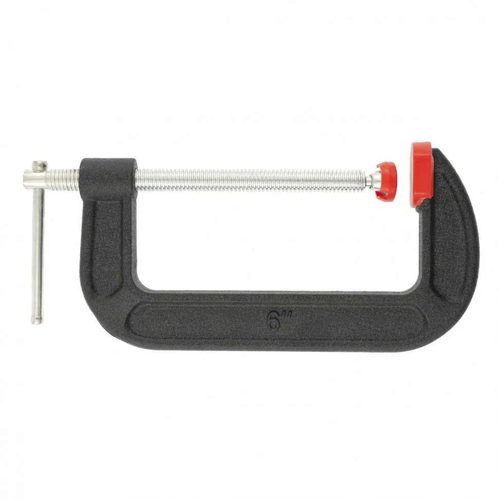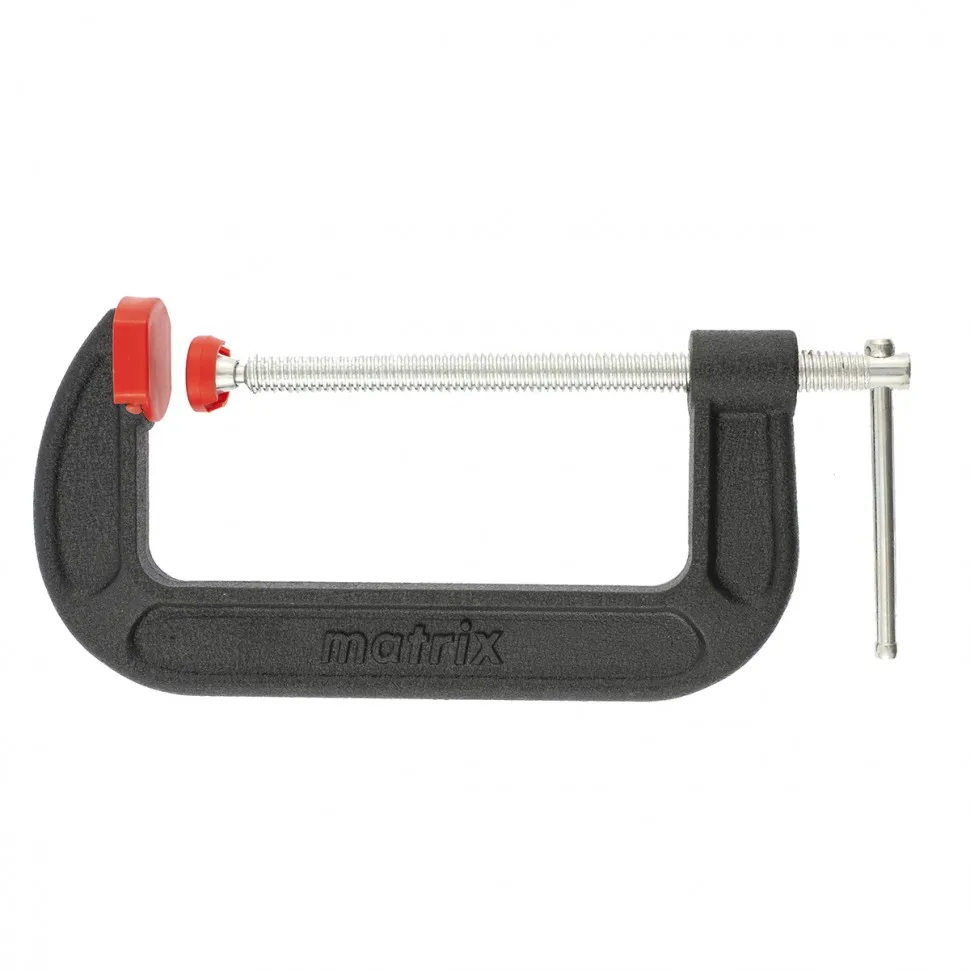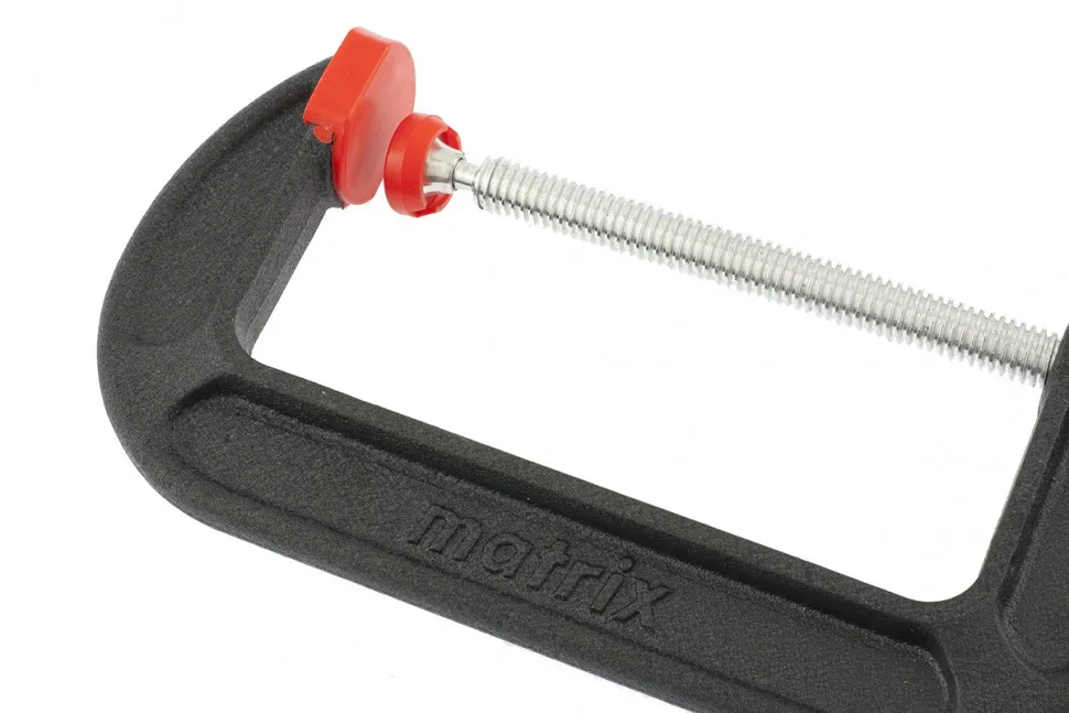 G-бразная струбцина Matrix 20606 с максимальной шириной зажима 150 мм используется для фиксации заготовок или закрепления их на верстаке или станке. Позволяет склеивать детали, а также сверлить их, шлифовать, опиливать и проводить другие работы. Подходит для использования при сварке. Рама изготовлена из высокопрочного чугуна, поэтому выдерживает значительные усилия. Винт с трапециевидной резьбой обеспечивает надежную фиксацию предметов. Струбцина применяется в слесарном и столярном деле, а также в домашнем хозяйстве.ПреимуществаВинт изготовлен из стали, что повышает устойчивость конструкции к нагрузкам.Покрытие из порошковой краски препятствует образованию коррозии на раме и обеспечивает ее стойкость к механическим повреждениям.Пластиковые накладки на губках защищают обрабатываемые детали от появления дефектов на поверхности (перед сварочными работами накладки необходимо снять).Для вращения винта предусмотрен вороток, что экономит силы мастера при затягивании зажима.