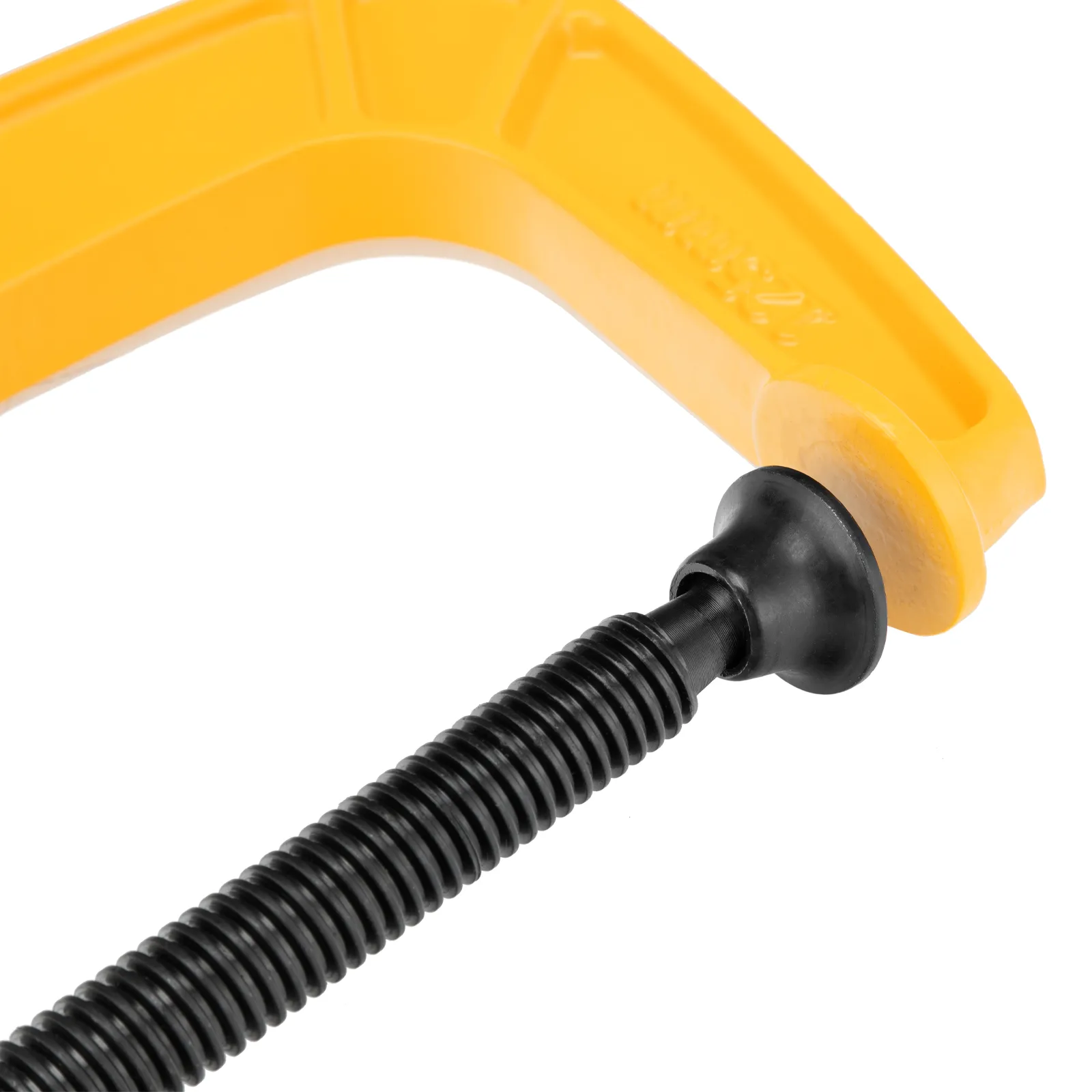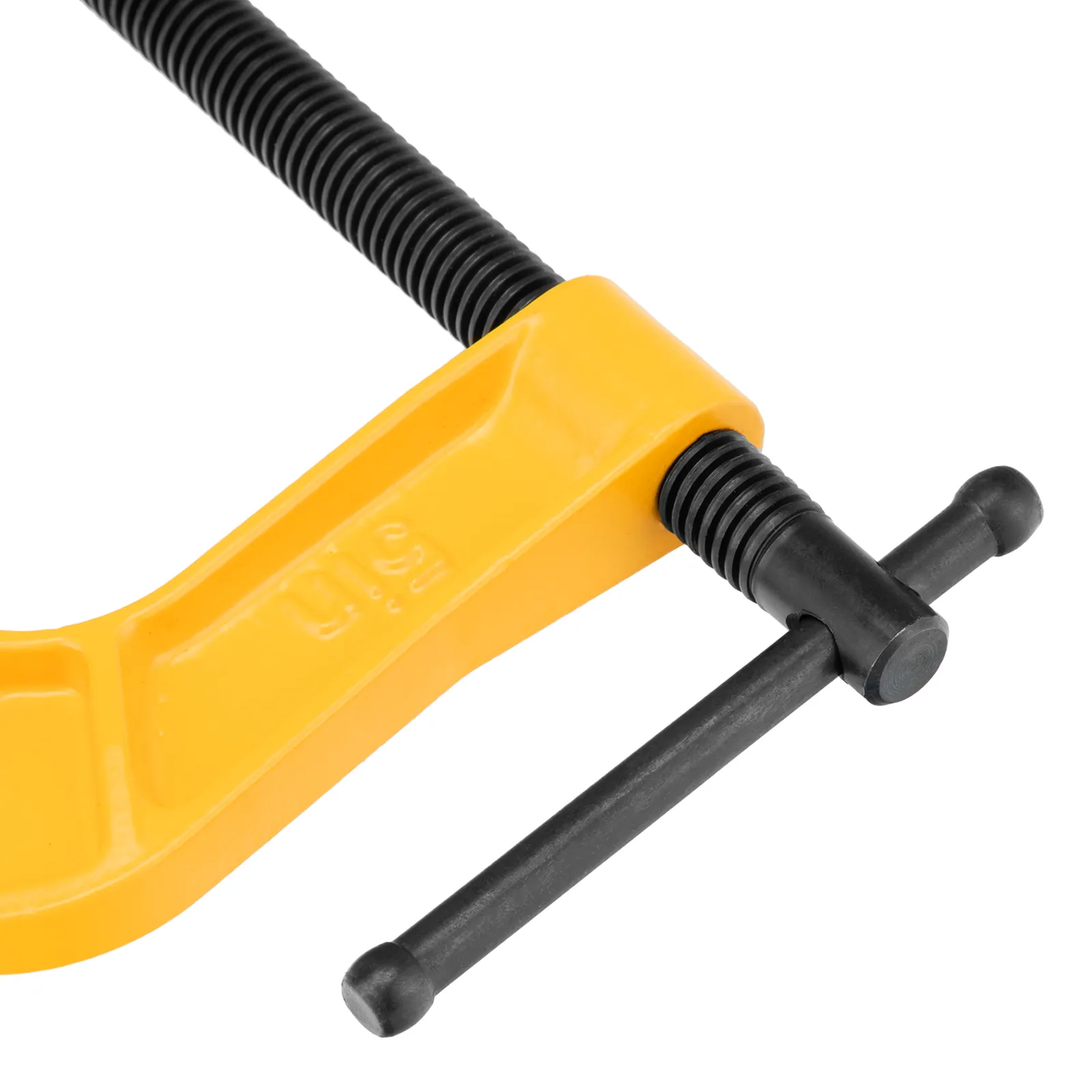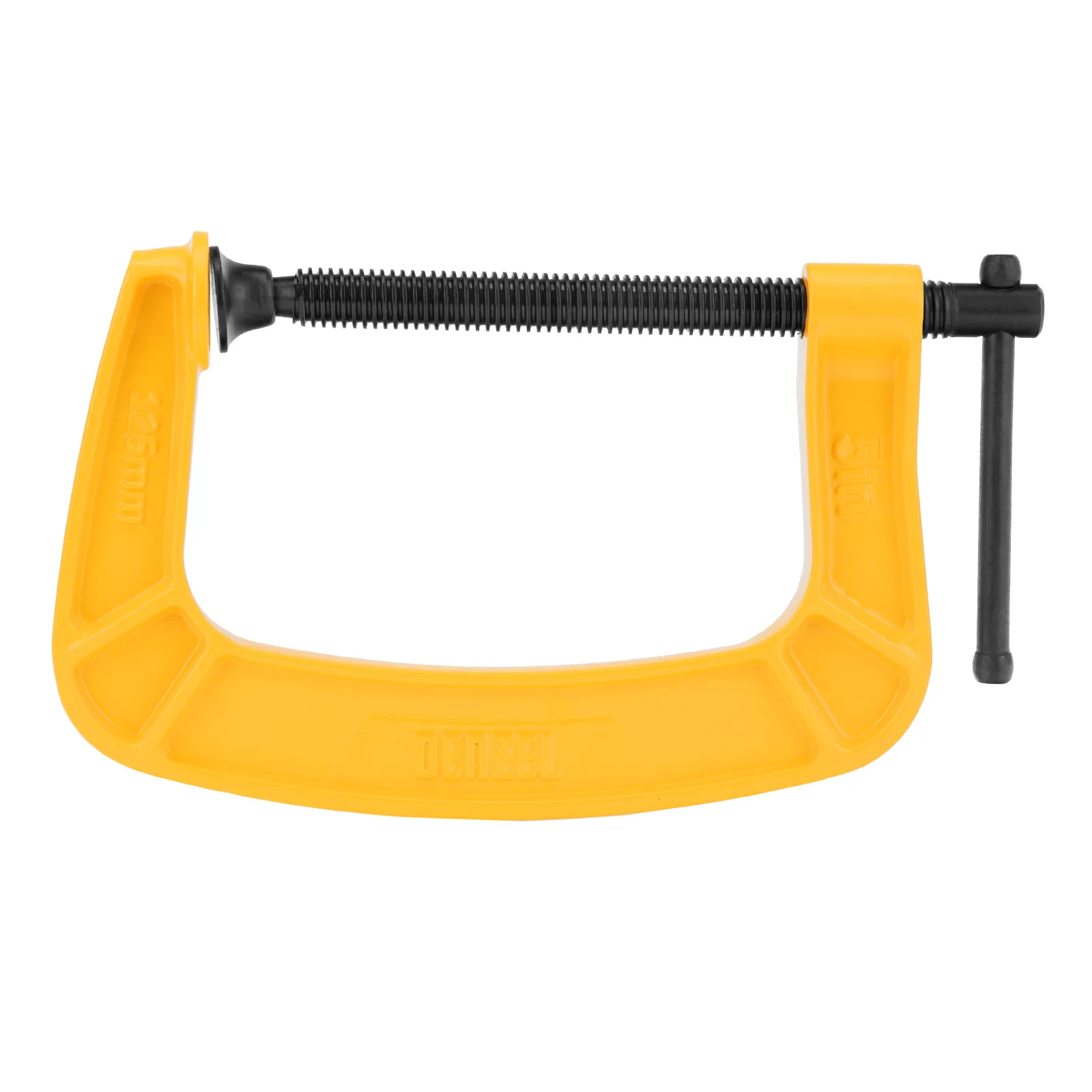 G-образная струбцина Denzel 20644 с максимальной шириной зажима 125 мм используется для фиксации заготовок или закрепления их на верстаке, станке или между собой. Позволяет склеивать детали, а также сверлить их, шлифовать, опиливать и проводить другие работы. Может использоваться во время выполнения сварочных работ. Винт с трапециевидной резьбой обеспечивает надежную фиксацию предметов. Струбцина применяется в слесарном и столярном деле, будет полезна также домашнем хозяйстве.